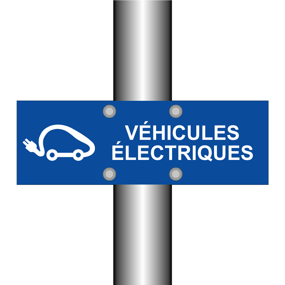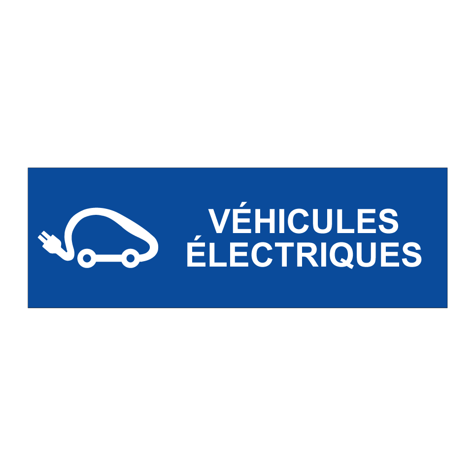 Panneau de stationnement avec le texte : "Véhicules électriques" et une symbolique claire.