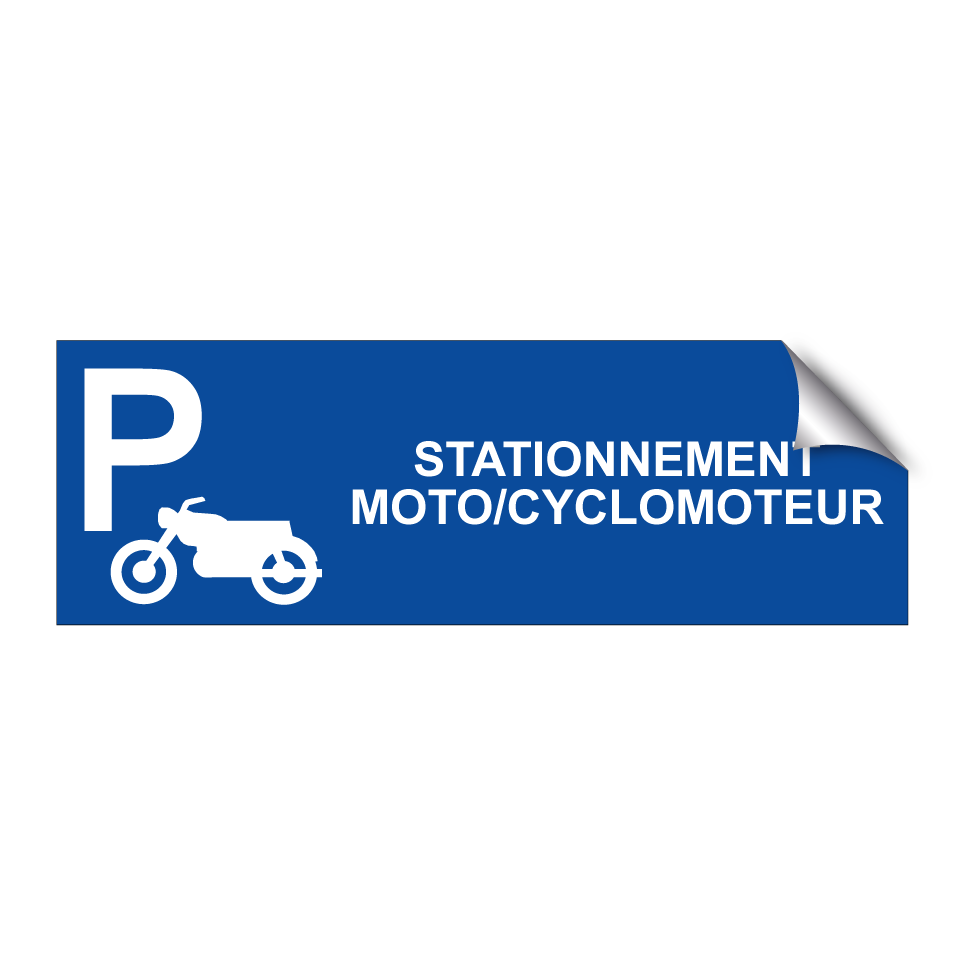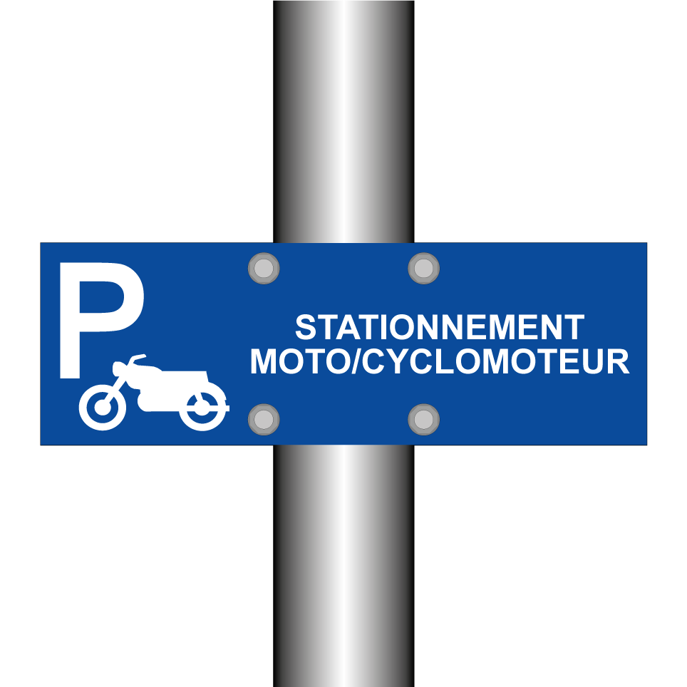 Panneau de stationnement avec le texte : "Stationnement Moto/Cyclomoteur" et une symbolique claire.