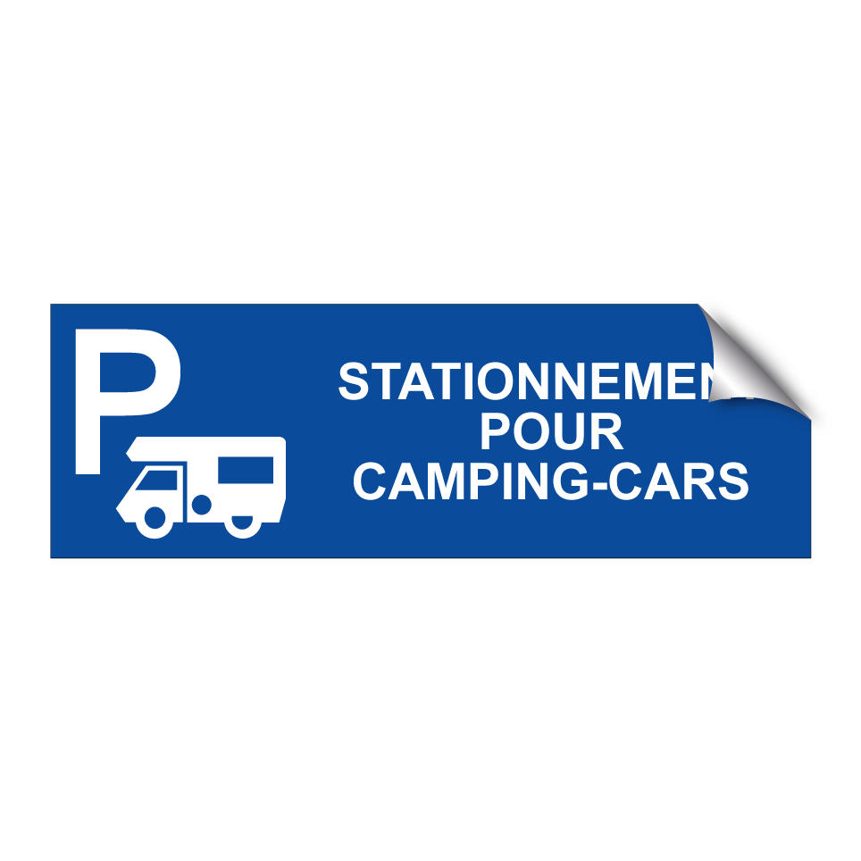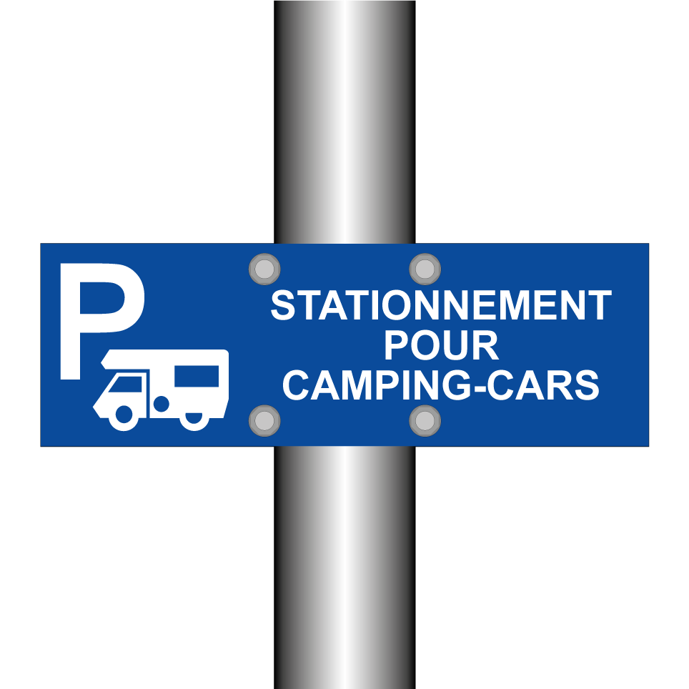 Panneau de stationnement avec le texte : "Stationnement pour camping-cars" et une symbolique claire.