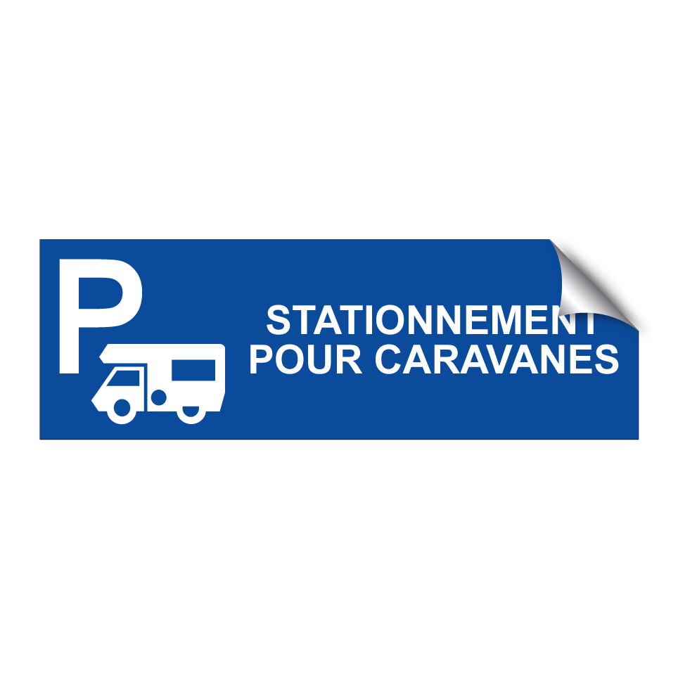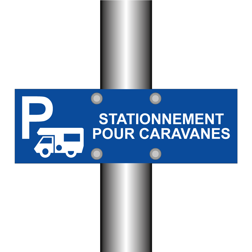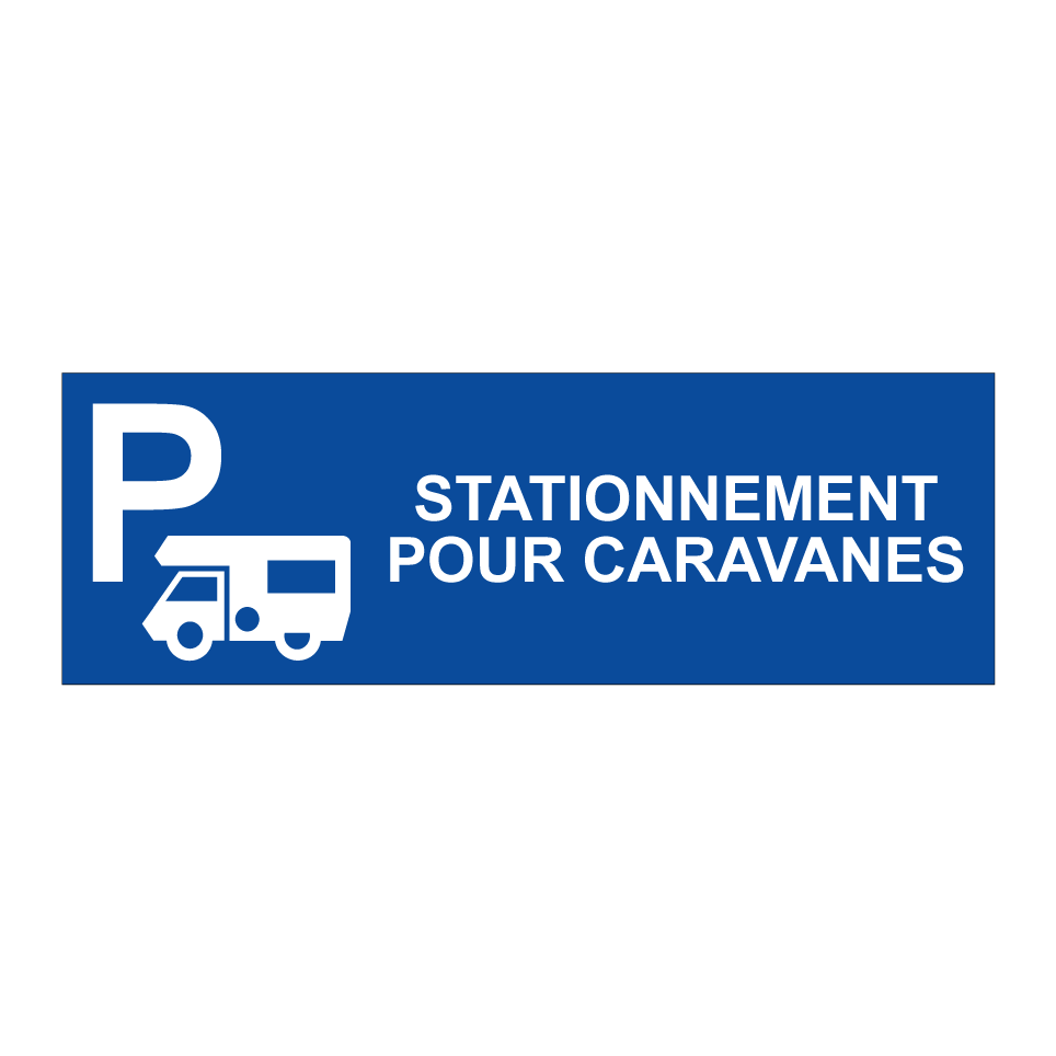 Panneau de stationnement avec le texte : "Stationnement pour caravanes" et une symbolique claire.