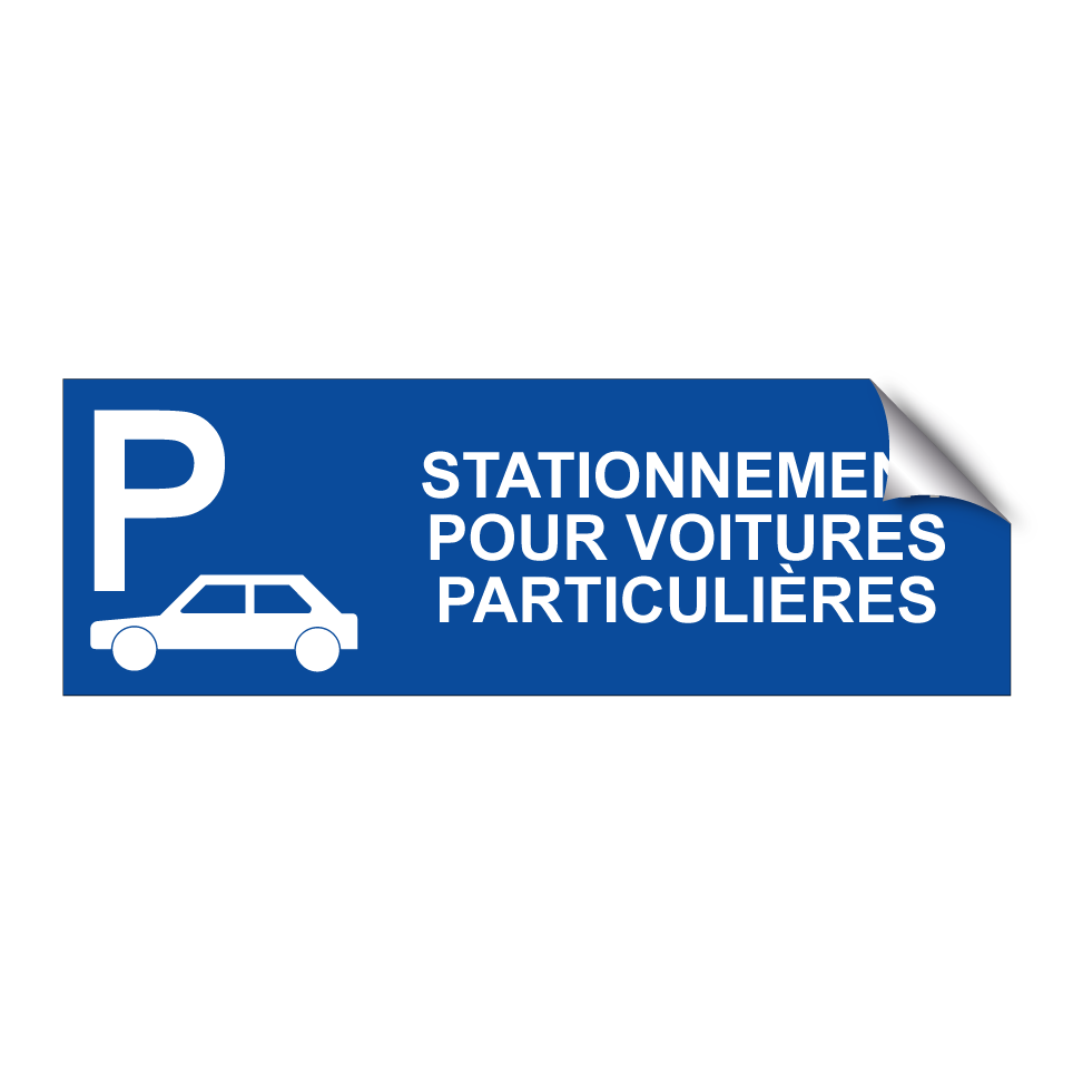 Panneau de stationnement avec le texte : "Stationnement pour voitures particulières" et une symbolique claire.