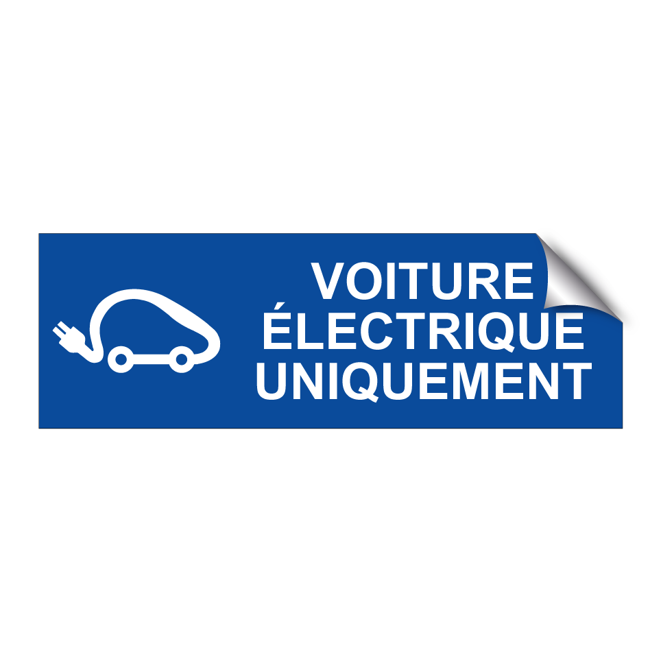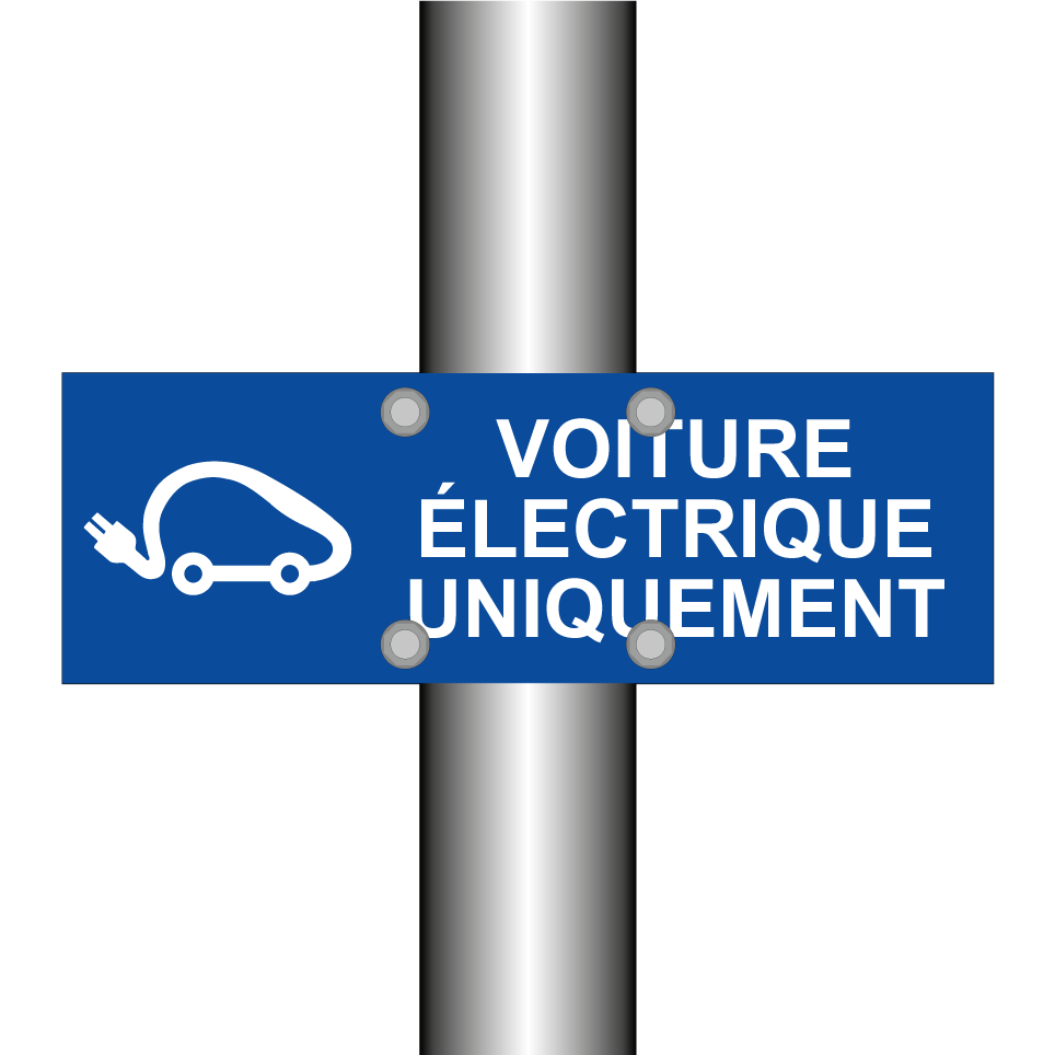 Panneau de stationnement avec le texte : "Voiture électrique uniquement" et une symbolique claire.