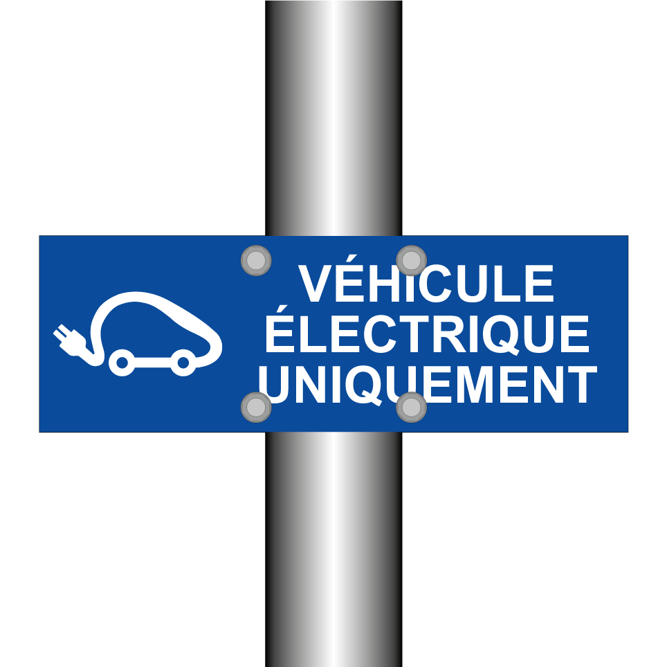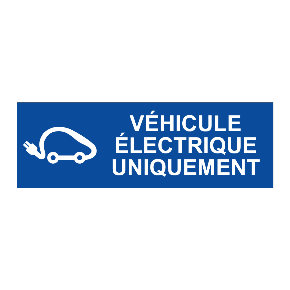 Panneau de stationnement avec le texte : "Véhicule électrique uniquement" et une symbolique claire.