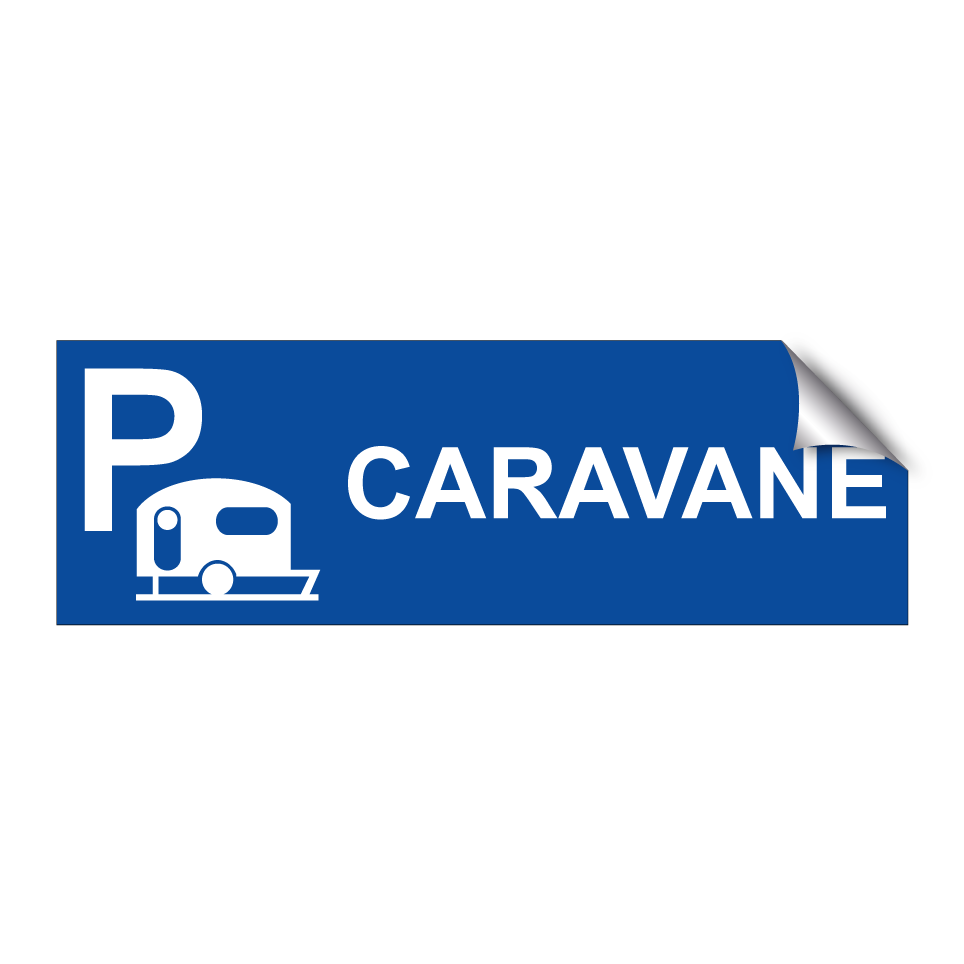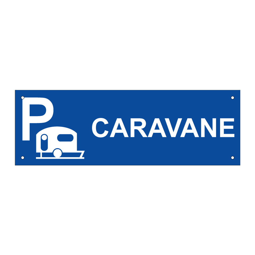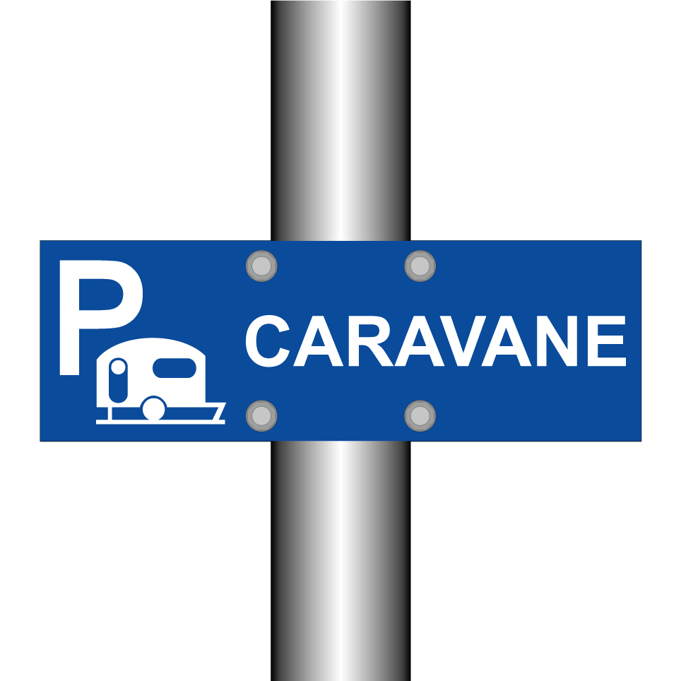 Panneau de stationnement avec le texte : "Caravane" et une symbolique claire.