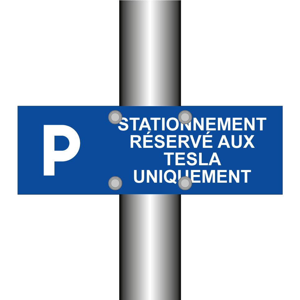 Panneau de stationnement avec le texte : "Stationnement réservé aux Tesla uniquement" et une symbolique claire.
