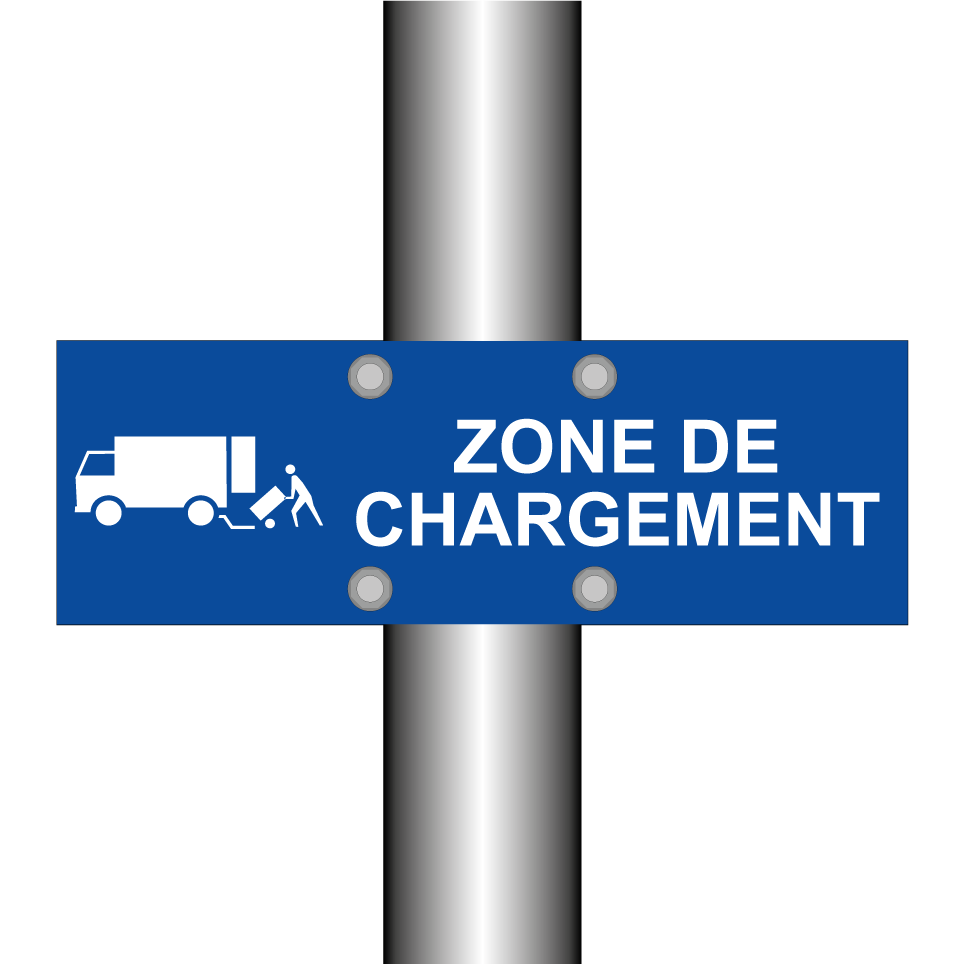 Panneau de stationnement avec le texte : "Zone de chargement" et une symbolique claire.