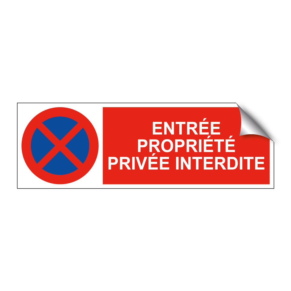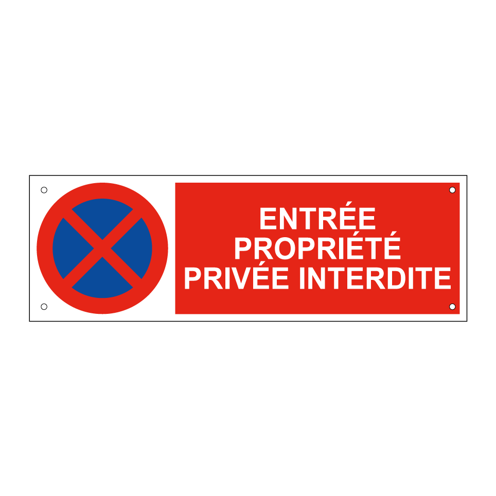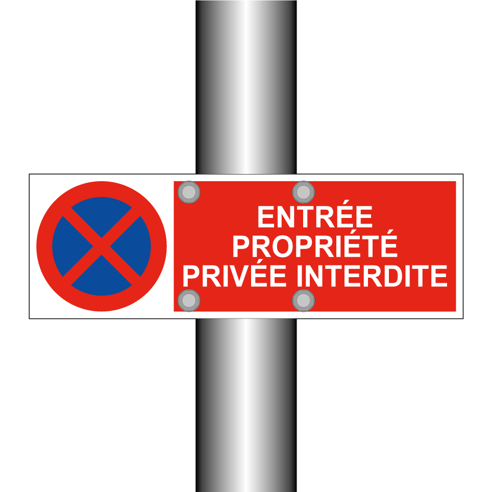 Panneau d'interdiction de stationner avec le texte : "Entrée propriété privée interdite" et une symbolique claire.