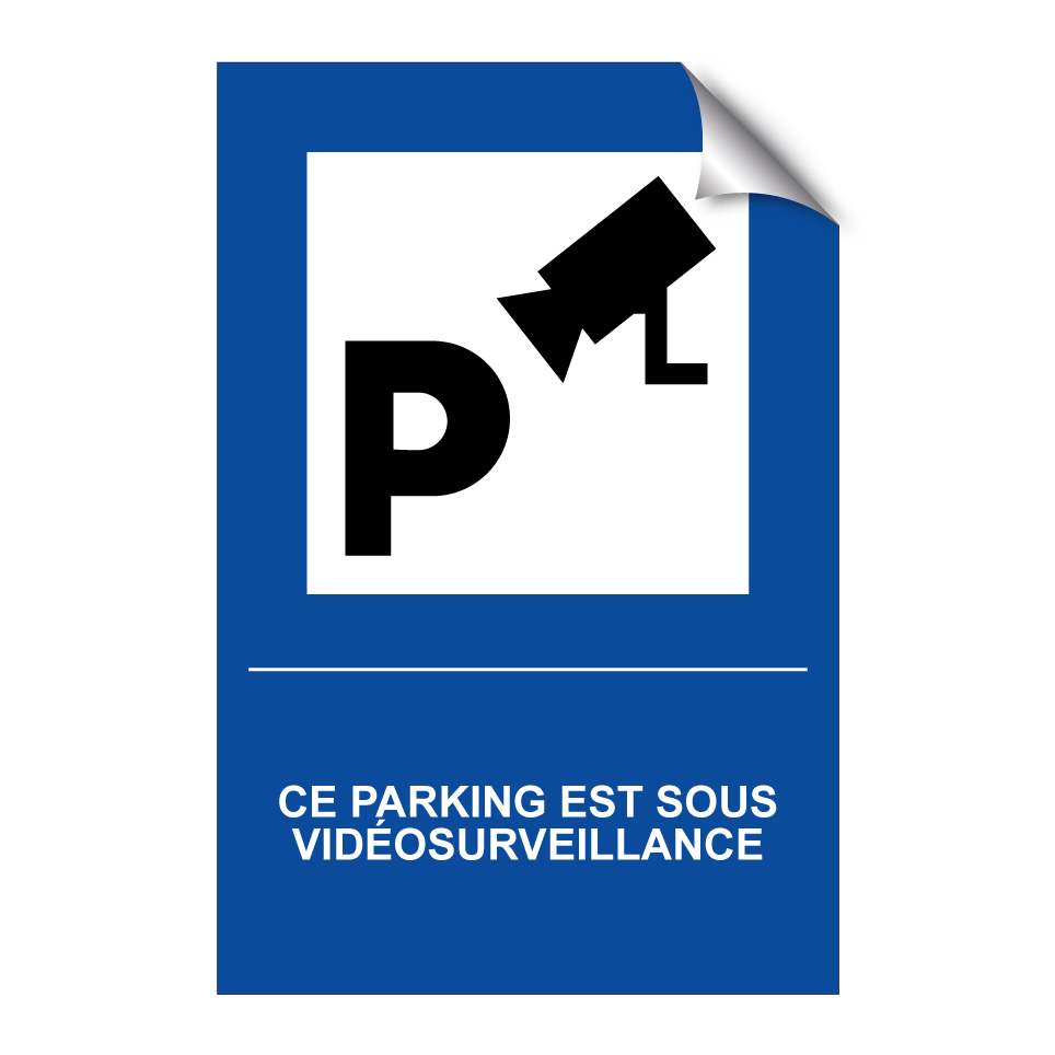 Panneau de stationnement avec le texte : "Ce parking est sous vidéosurveillance" et une symbolique claire.