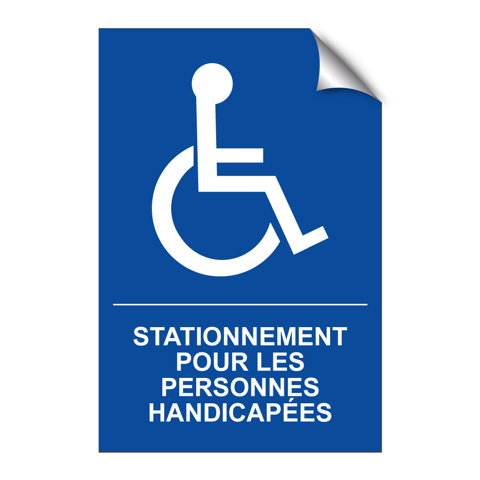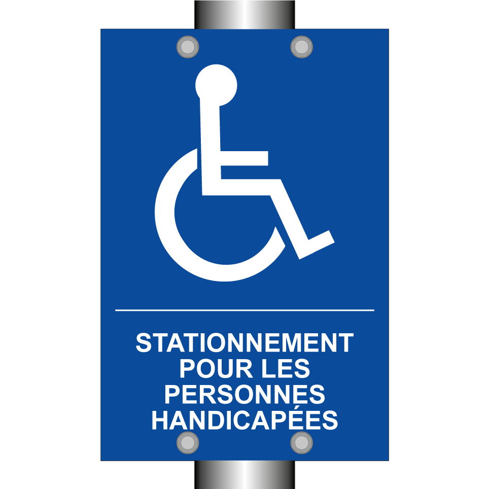 Panneau de stationnement avec le texte : "Stationnement pour les personnes handicapées" et une symbolique claire.