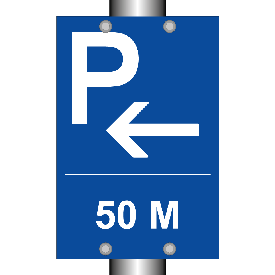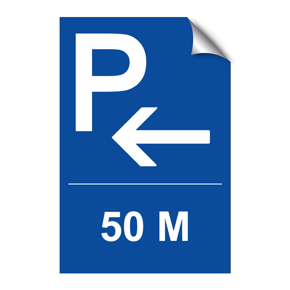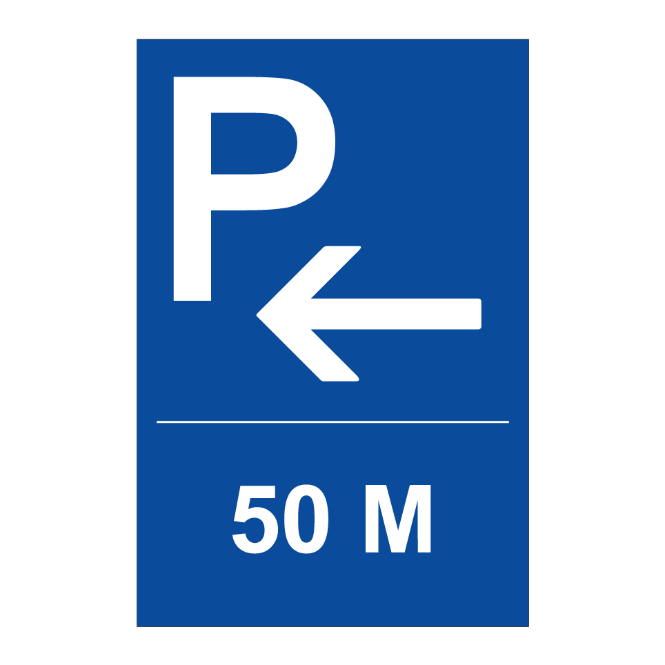 Panneau de stationnement avec le texte : "50 m" et une symbolique claire.