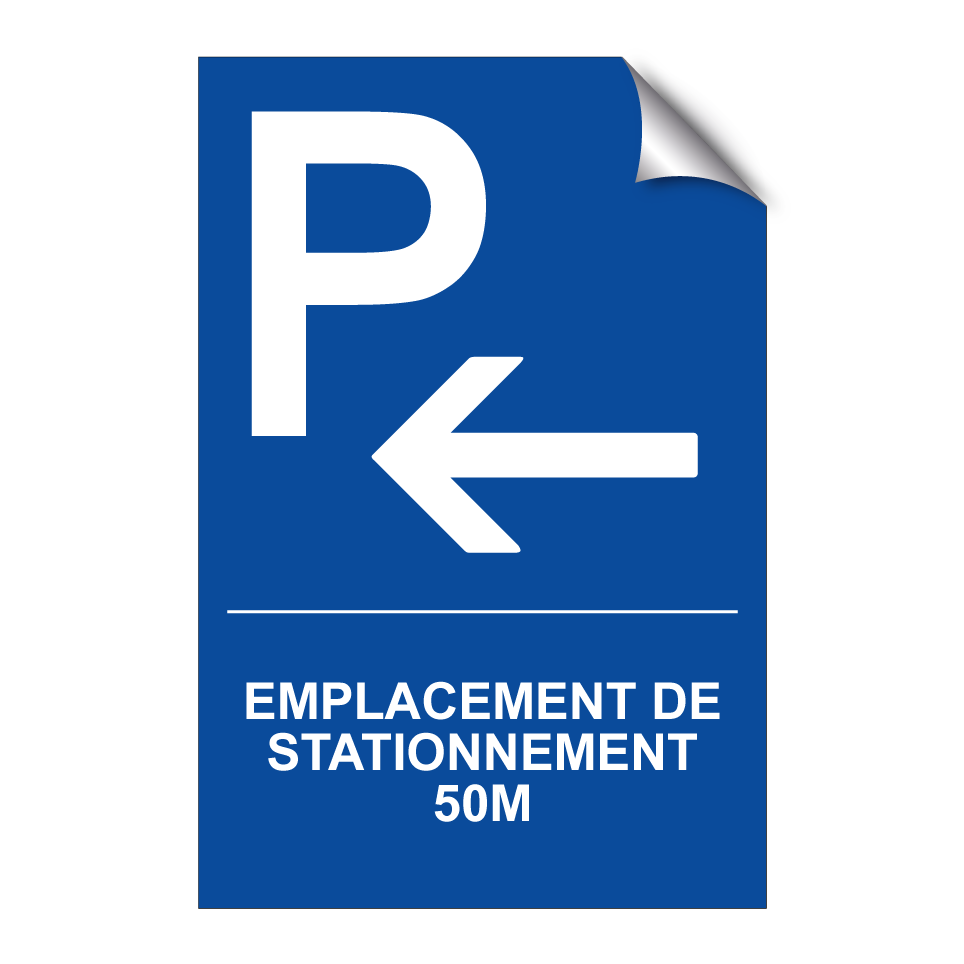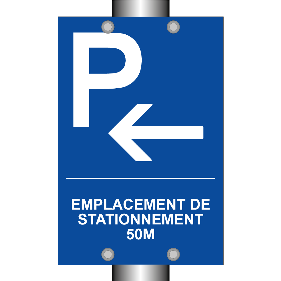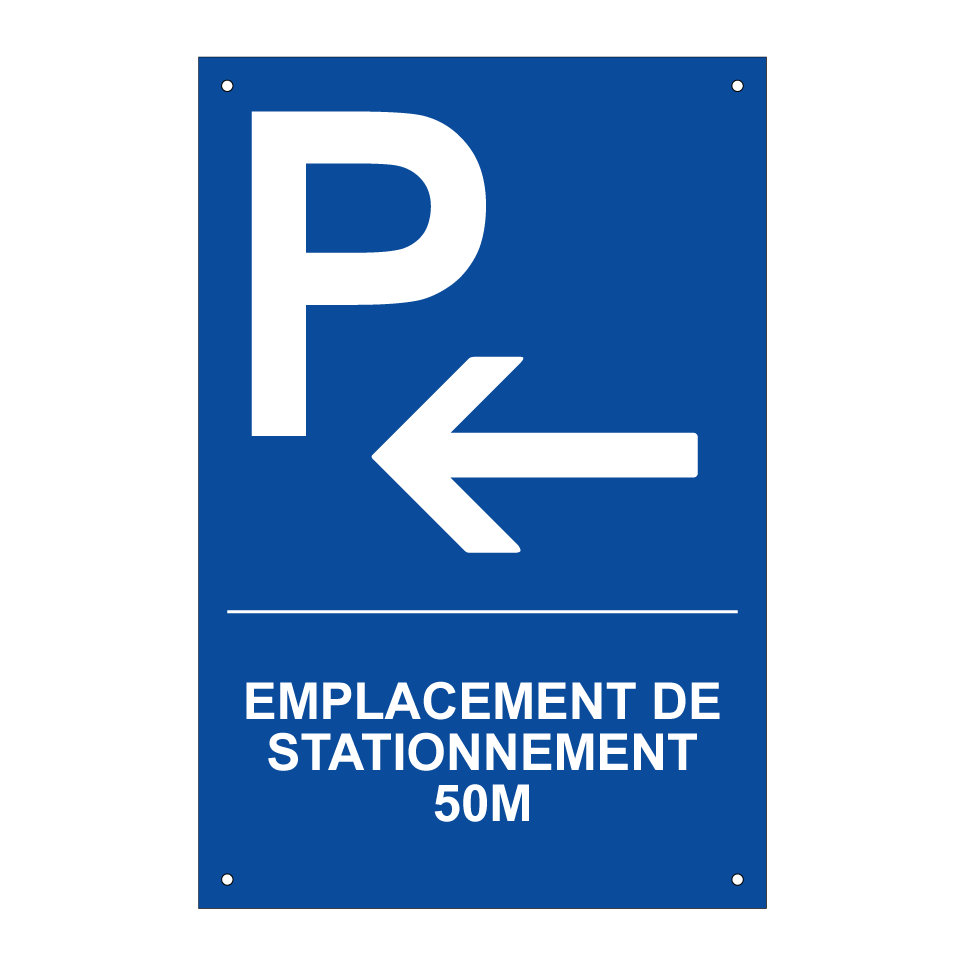Panneau de stationnement avec le texte : "Emplacement de stationnement 50m" et une symbolique claire.