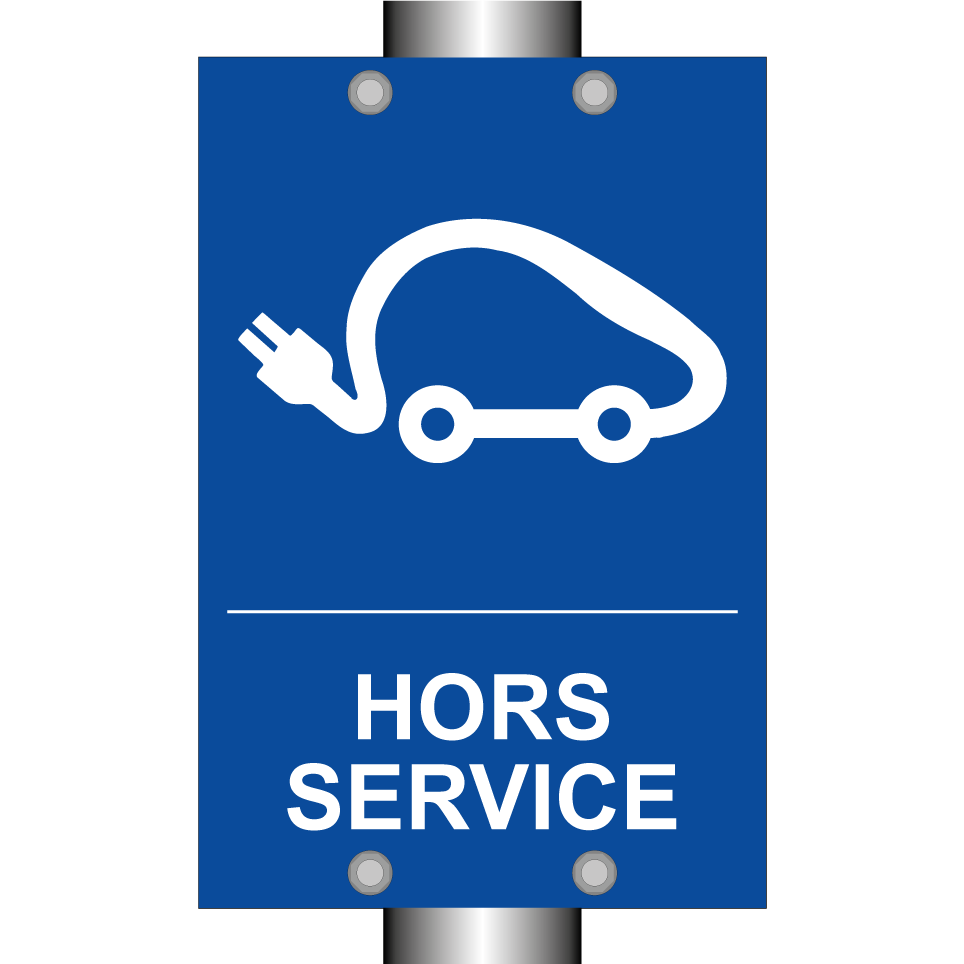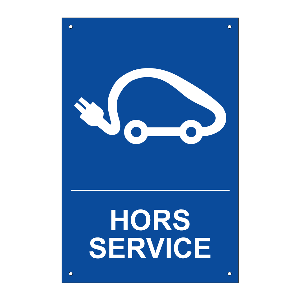 Panneau de stationnement avec le texte : "Hors service" et une symbolique claire.