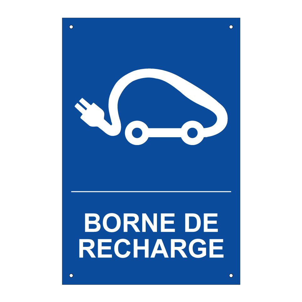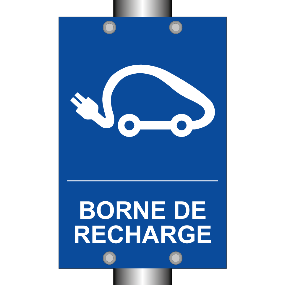 Panneau de stationnement avec le texte : "Borne de recharge" et une symbolique claire.
