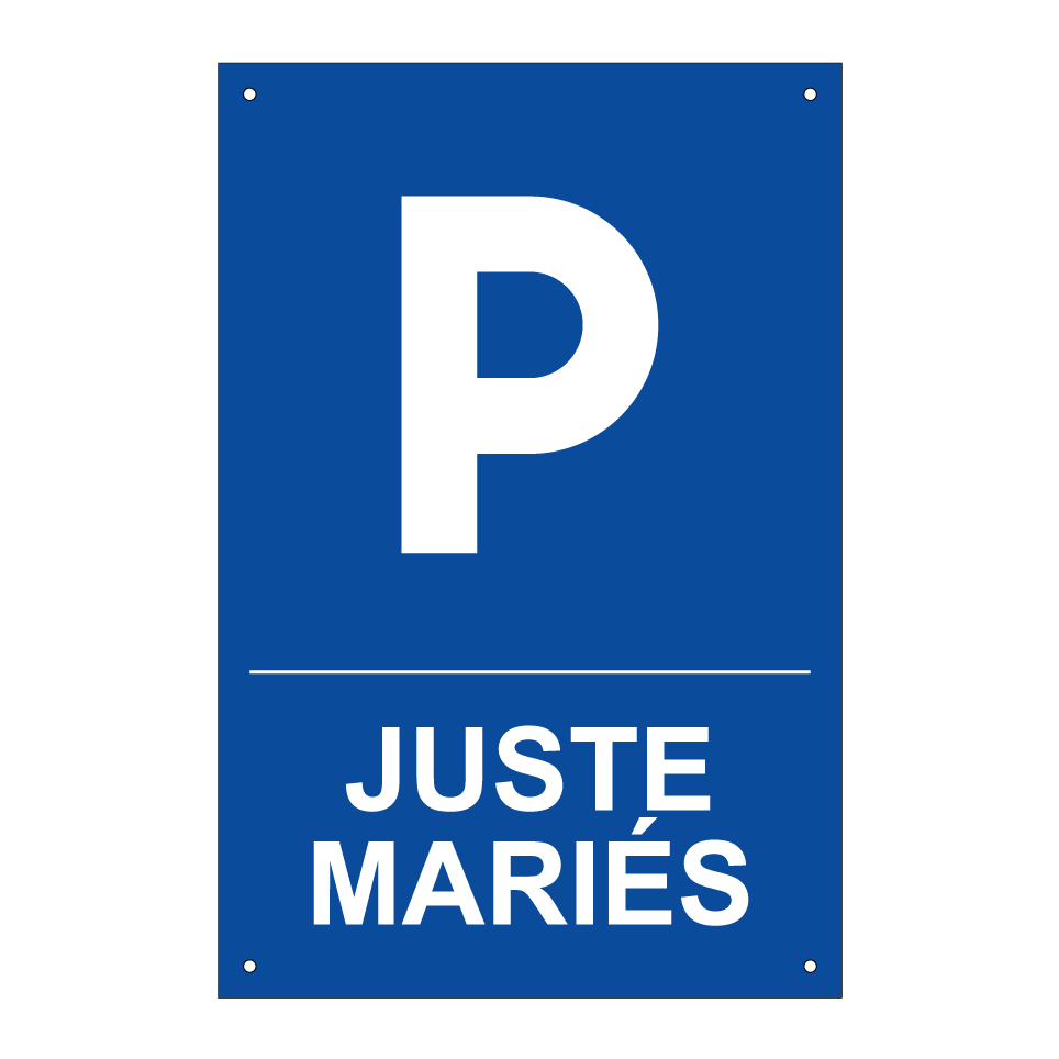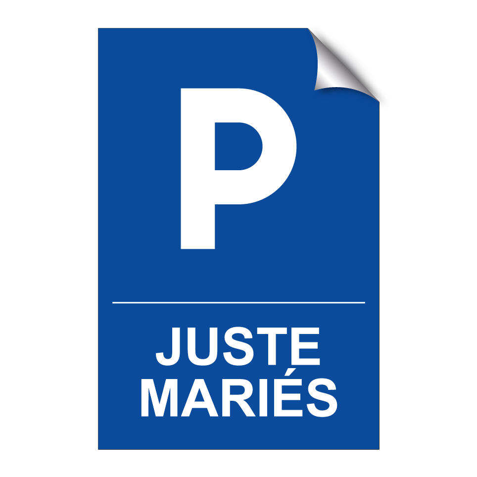 Panneau de stationnement avec le texte : "Juste mariés" et une symbolique claire.