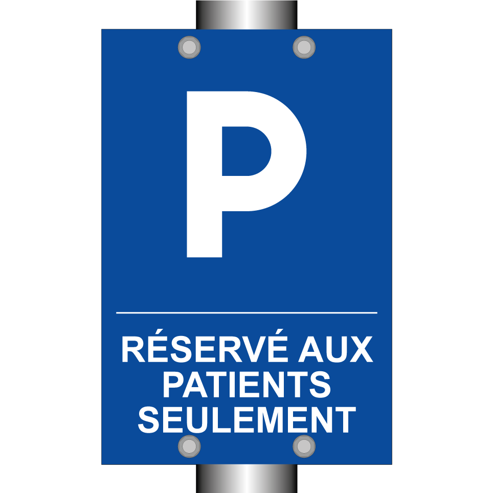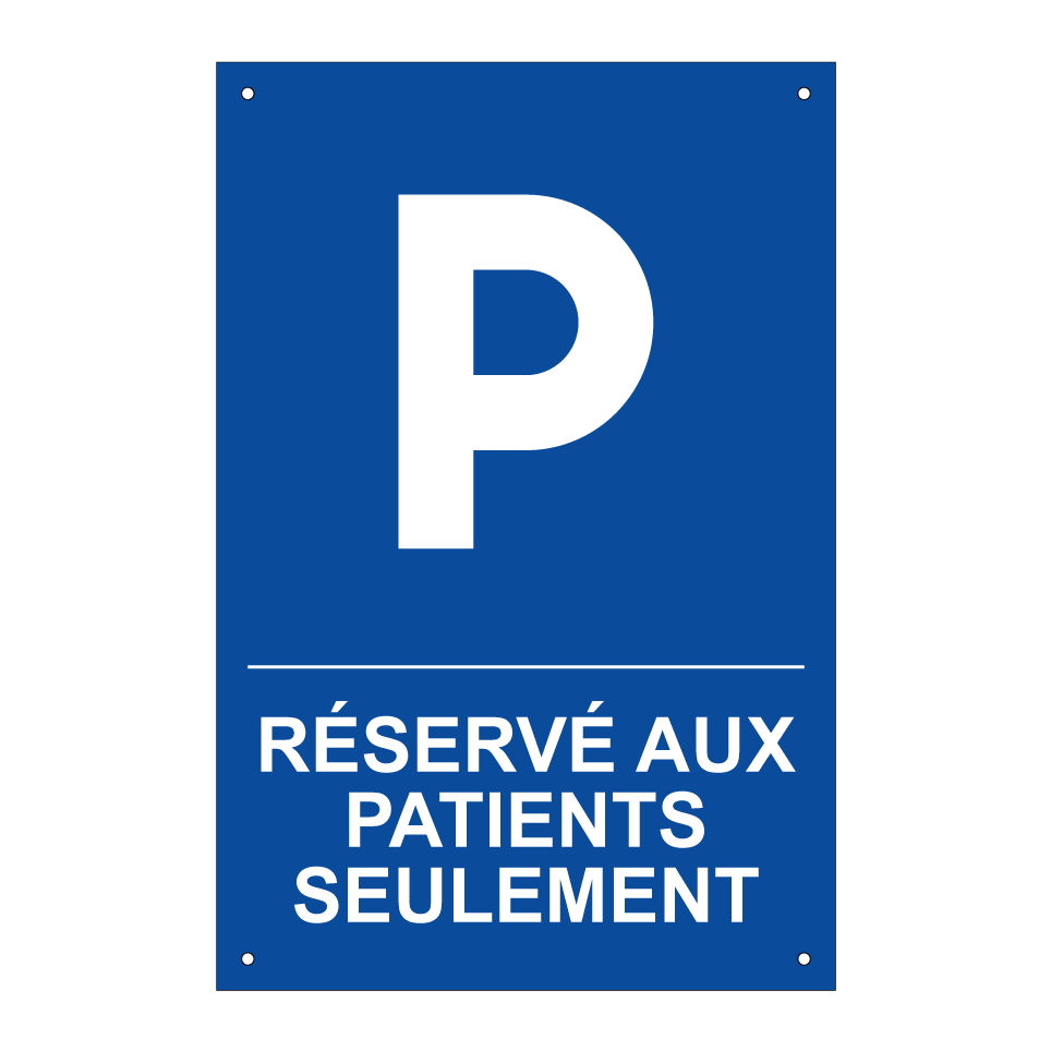 Panneau de stationnement avec le texte : "Réservé aux patients seulement" et une symbolique claire.