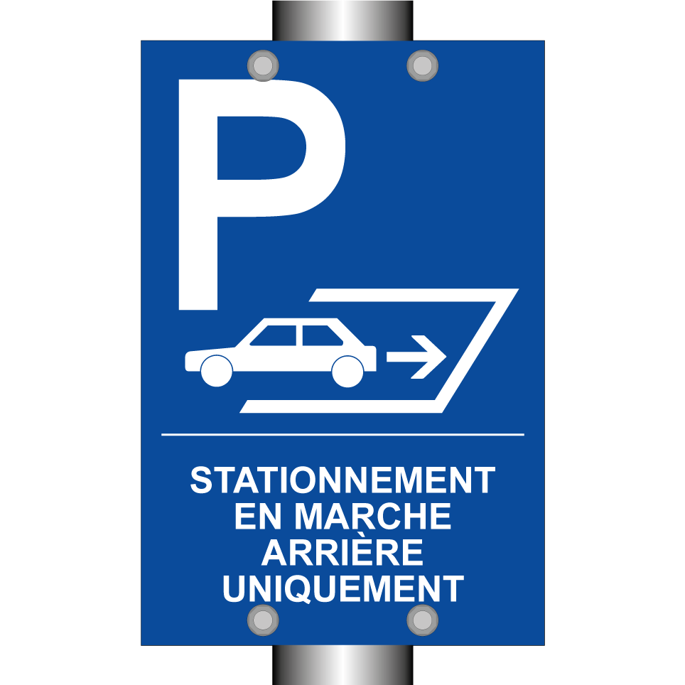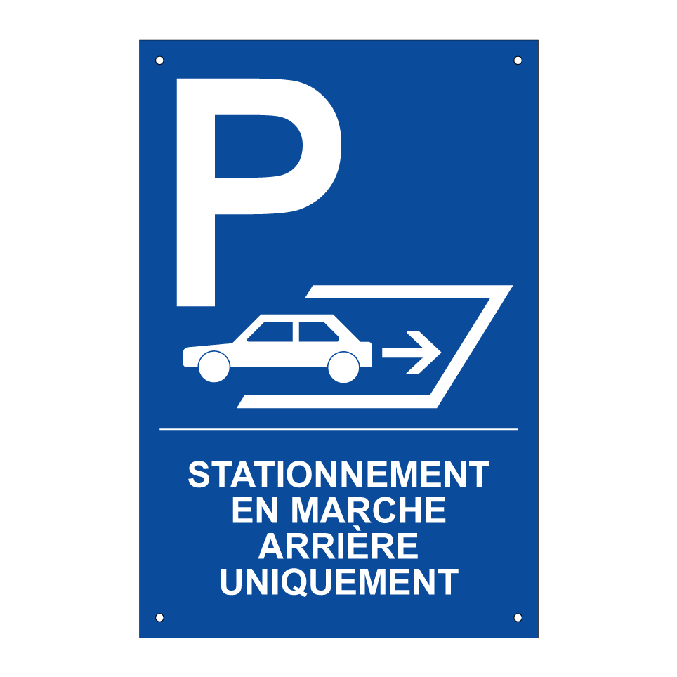 Ce panneau de stationnement est idéal pour les parkings où le stationnement en marche arrière est requis. Il est parfait pour les zones commerciales, les parkings d'entreprises ou les garages souterrains. Grâce à sa couleur bleue et son texte blanc, il est facilement visible et attire l'attention des conducteurs. Ce panneau peut être installé à l'entrée des parkings ou à des emplacements spécifiques pour guider les automobilistes et assurer une circulation fluide et sécurisée.