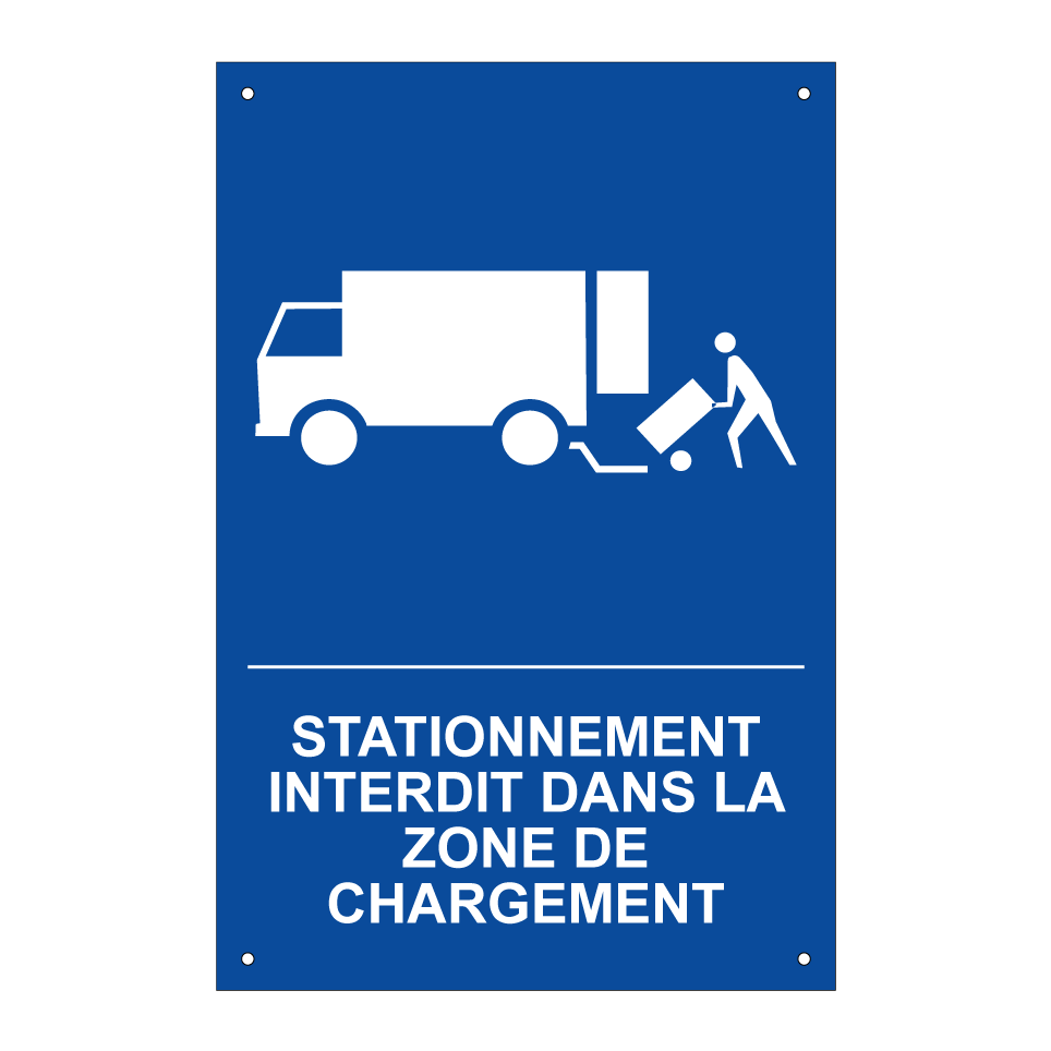 Ce panneau de stationnement interdit est idéal pour les zones de chargement où le stationnement doit être strictement contrôlé. Grâce à sa couleur bleue et son texte blanc, il est facilement visible et attire l'attention des conducteurs. Placez-le à l'entrée des zones de chargement pour éviter les blocages et assurer un accès fluide pour les véhicules de livraison. Ce panneau est essentiel pour maintenir l'ordre et la sécurité dans les espaces de travail, garantissant que les zones de chargement restent dégagées et fonctionnelles.