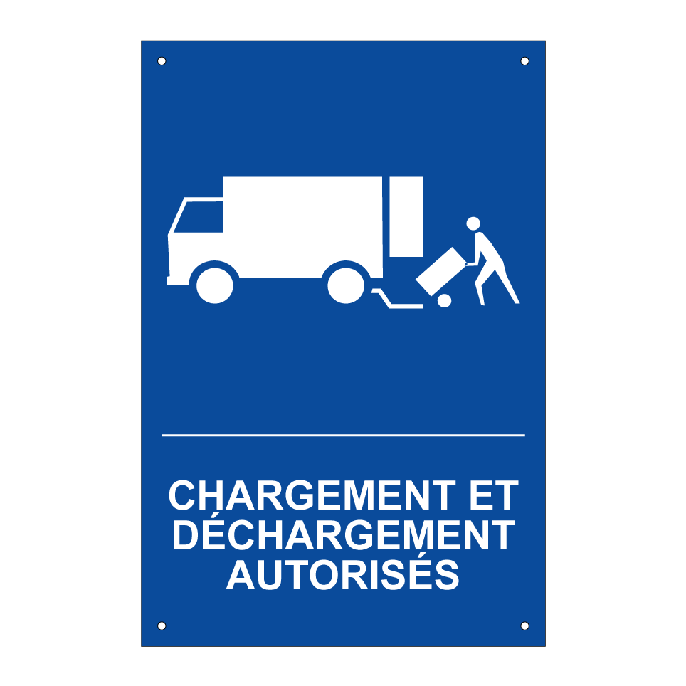 Panneau de stationnement avec le texte : "Chargement et déchargement autorisés" et une symbolique claire.