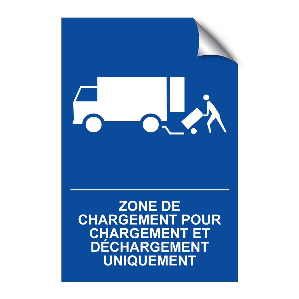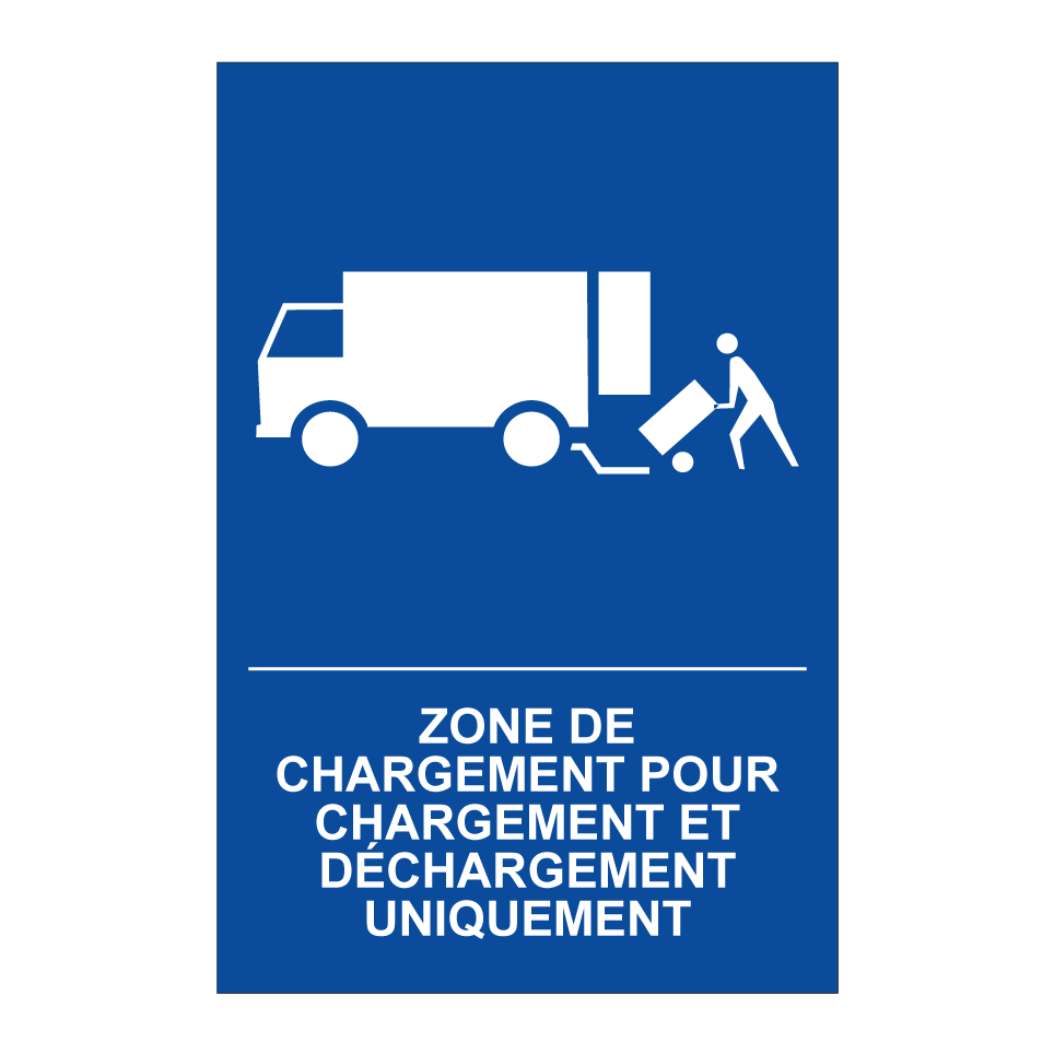 Panneau de stationnement avec le texte : "Zone de chargement pour chargement et déchargement uniquement" et une symbolique claire.