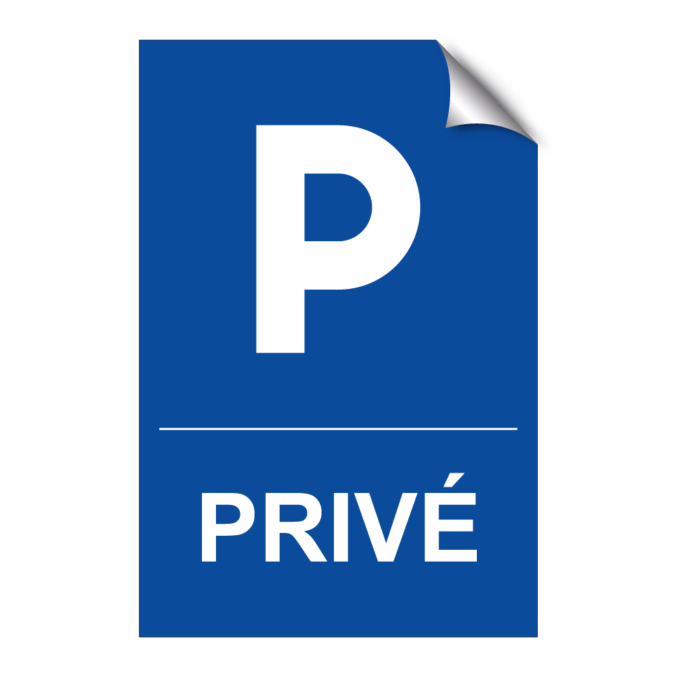 Panneau de stationnement avec le texte : "Privé" et une symbolique claire.