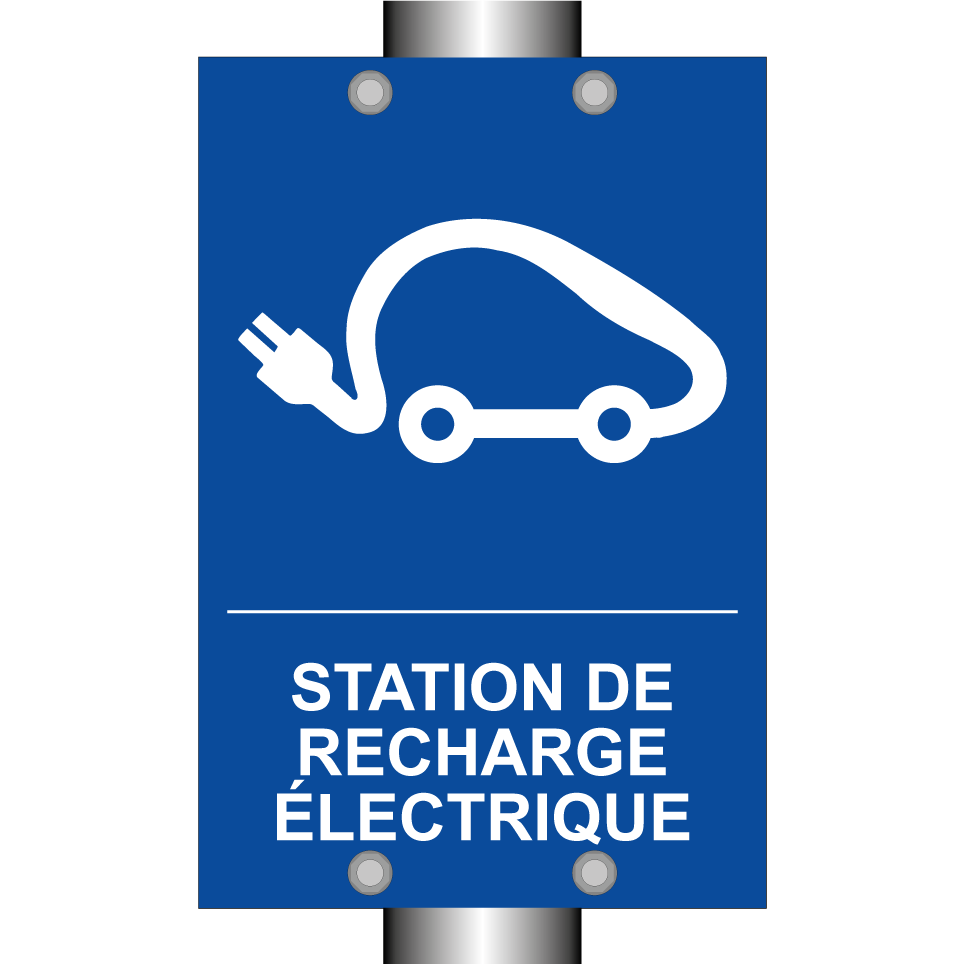 Panneau de stationnement avec le texte : "Station de recharge électrique" et une symbolique claire.