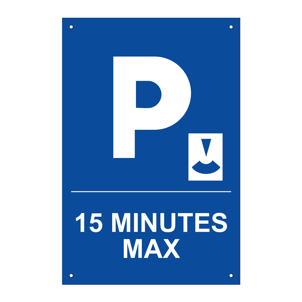 Panneau de stationnement avec le texte : "15 minutes max." et une symbolique claire.