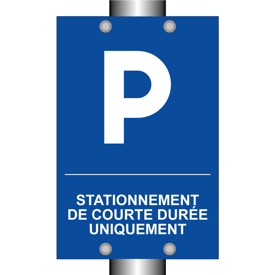 Panneau de stationnement avec le texte : "Stationnement de courte durée uniquement" et une symbolique claire.