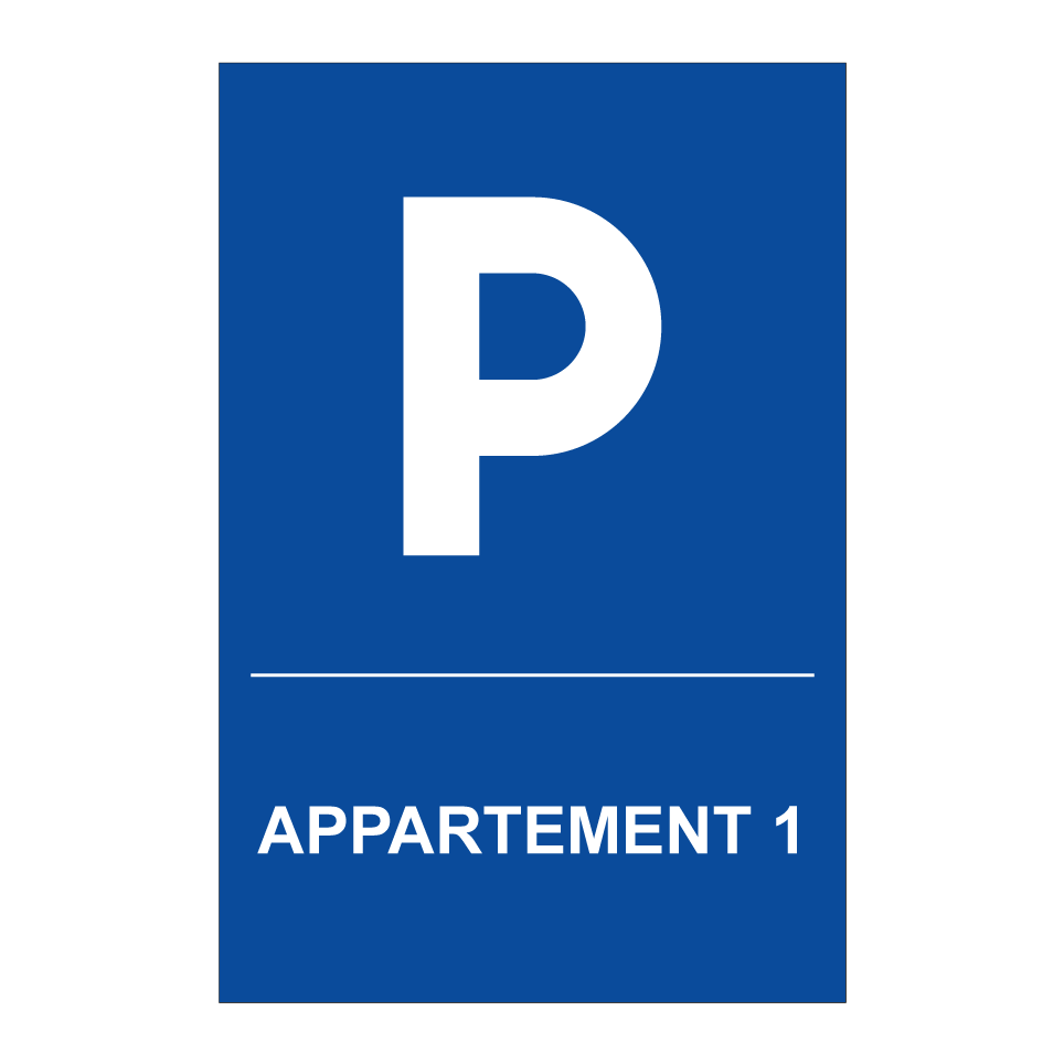 Panneau de stationnement avec le texte : "Appartement 1" et une symbolique claire.