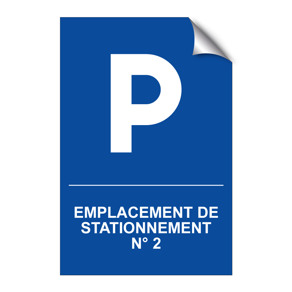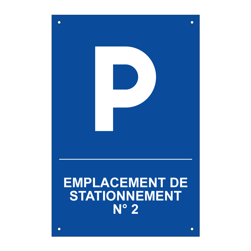 Panneau de stationnement avec le texte : "Emplacement de stationnement n° 2" et une symbolique claire.