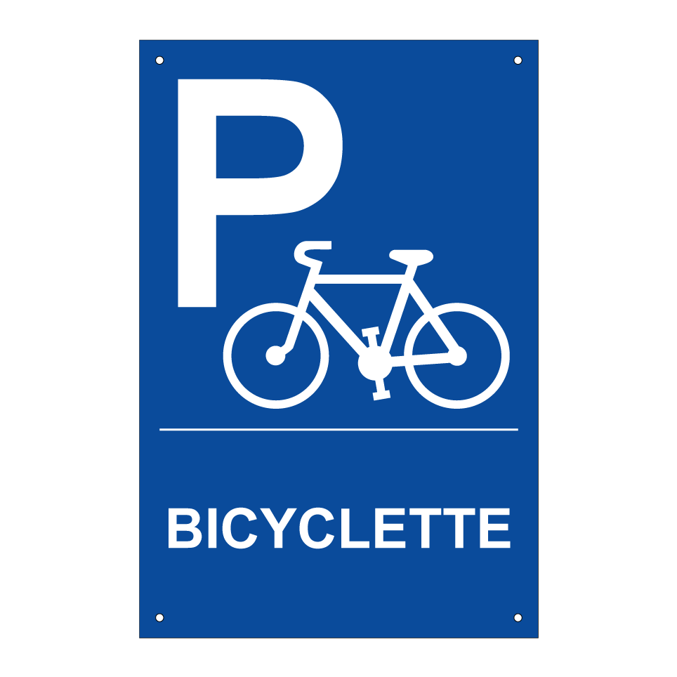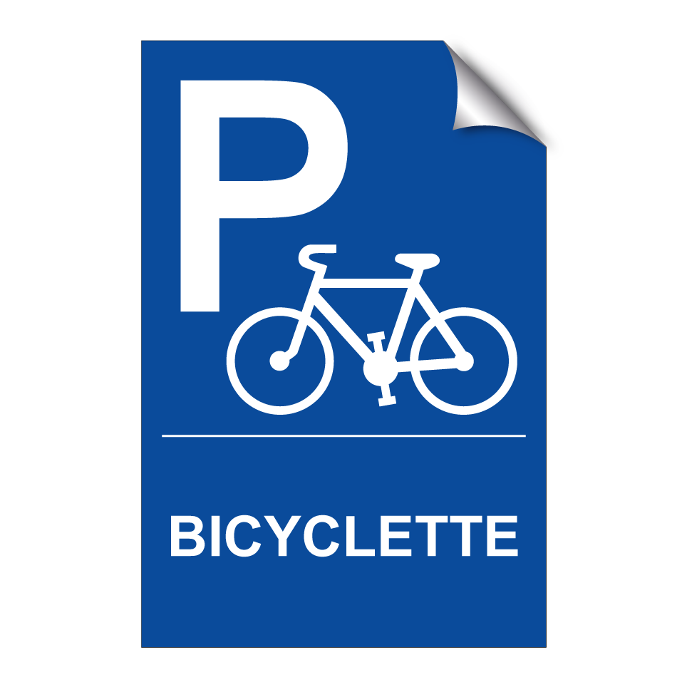 Panneau de stationnement avec le texte : "Bicyclette" et une symbolique claire.
