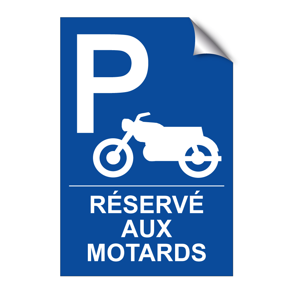 Panneau de stationnement avec le texte : "Réservé aux motards" et une symbolique claire.