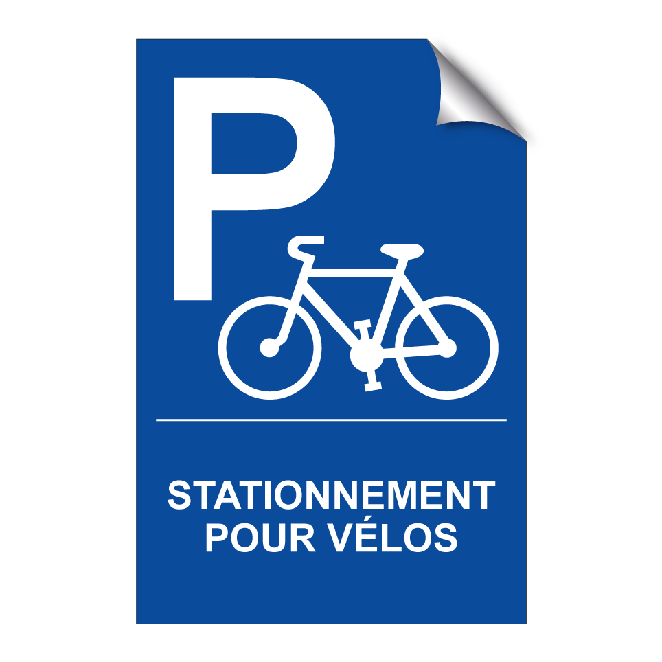 Panneau de stationnement avec le texte : "Stationnement pour vélos" et une symbolique claire.