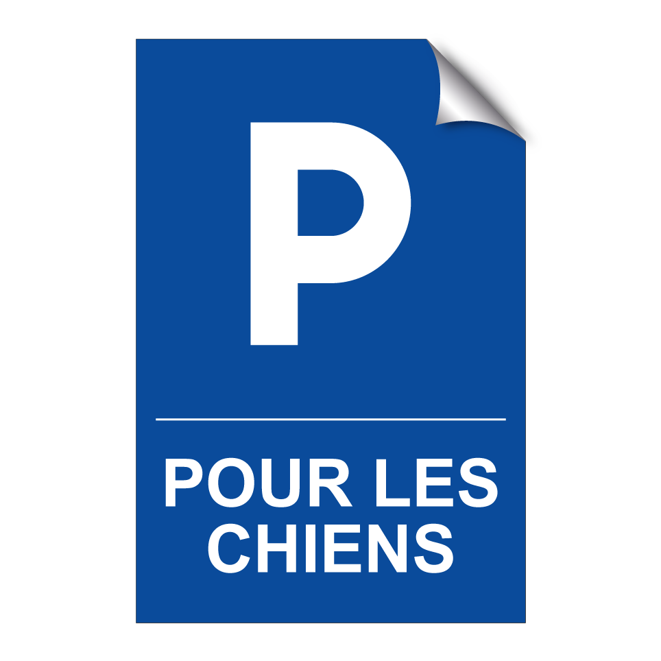 Panneau de stationnement avec le texte : "Pour les chiens" et une symbolique claire.