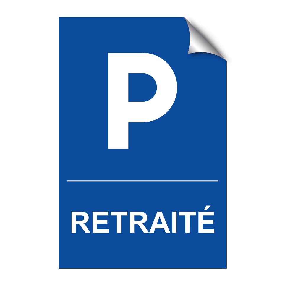 Panneau de stationnement avec le texte : "Retraité" et une symbolique claire.