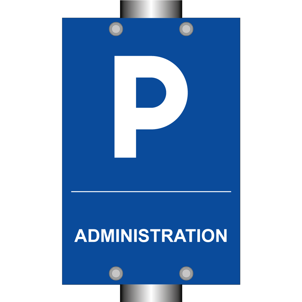 Panneau de stationnement avec le texte : "Administration" et une symbolique claire.
