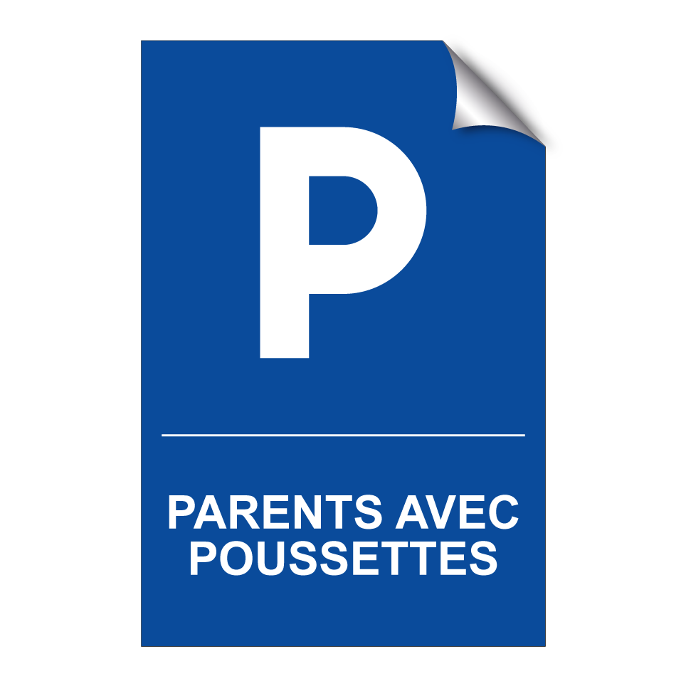 Panneau de stationnement avec le texte : "Parents avec poussettes" et une symbolique claire.