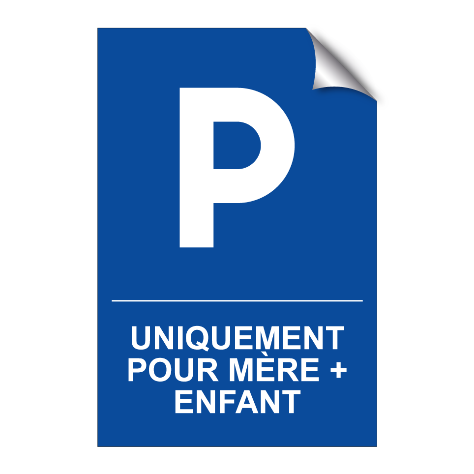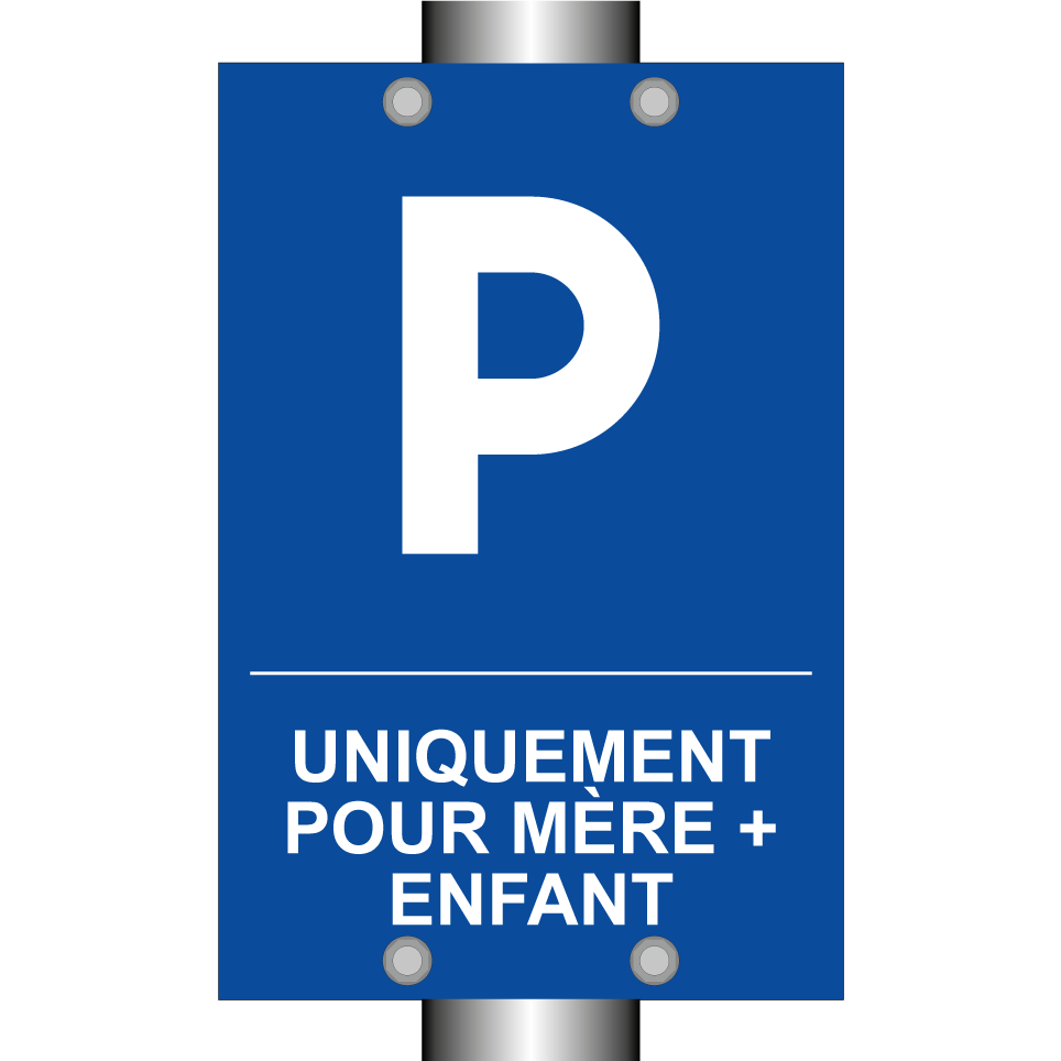 Panneau de stationnement avec le texte : "Uniquement pour mère + enfant" et une symbolique claire.