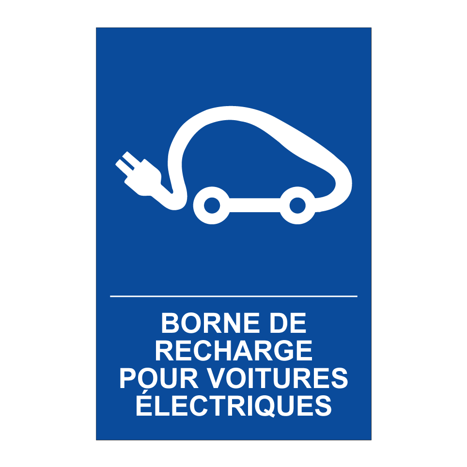 Panneau de stationnement avec le texte : "Borne de recharge pour voitures électriques" et une symbolique claire.