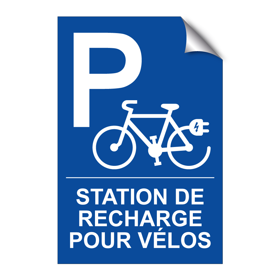 Panneau de stationnement avec le texte : "Station de recharge pour vélos" et une symbolique claire.