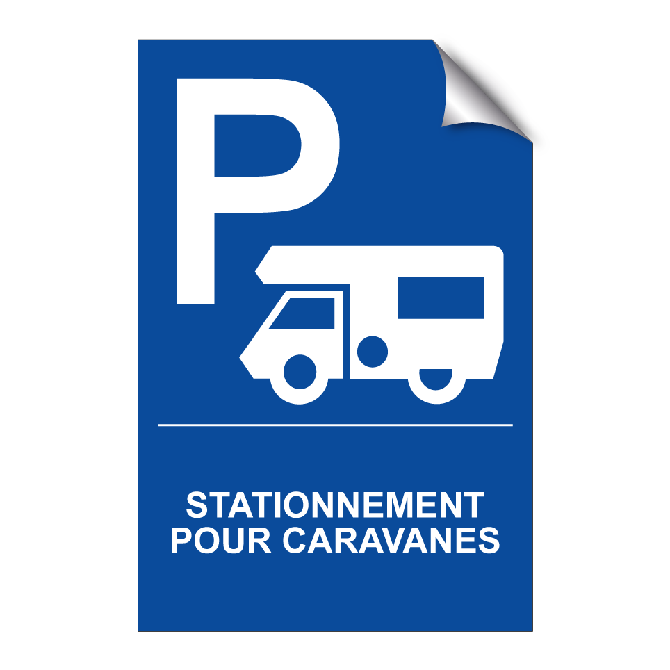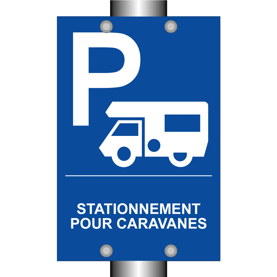 Panneau de stationnement avec le texte : "Stationnement pour caravanes" et une symbolique claire.