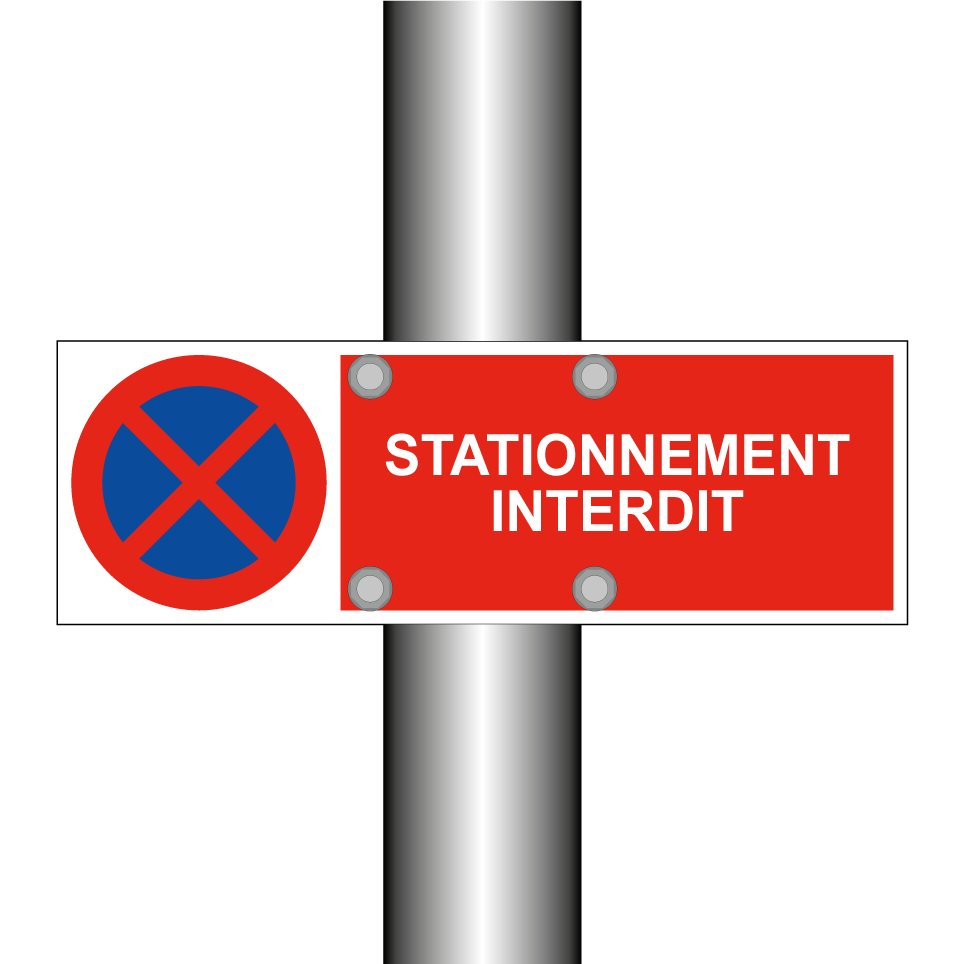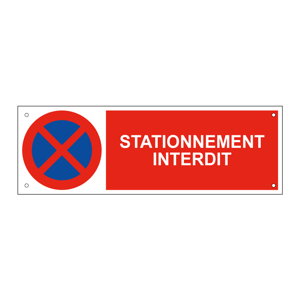 Panneau d'interdiction de stationner avec le texte : "Stationnement interdit" et une symbolique claire.