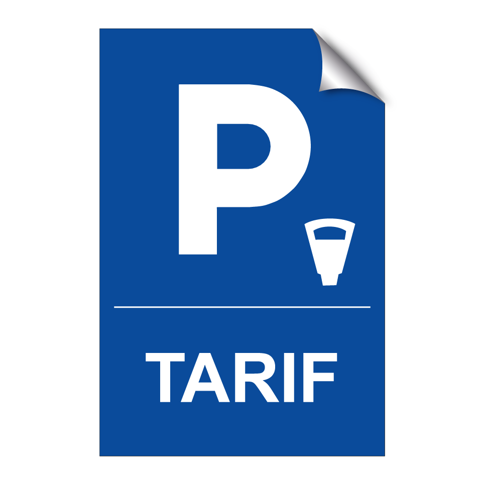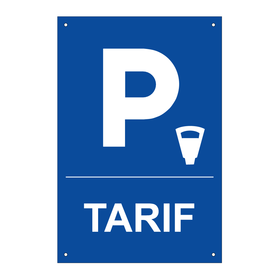 Panneau de stationnement avec le texte : "Tarif" et une symbolique claire.