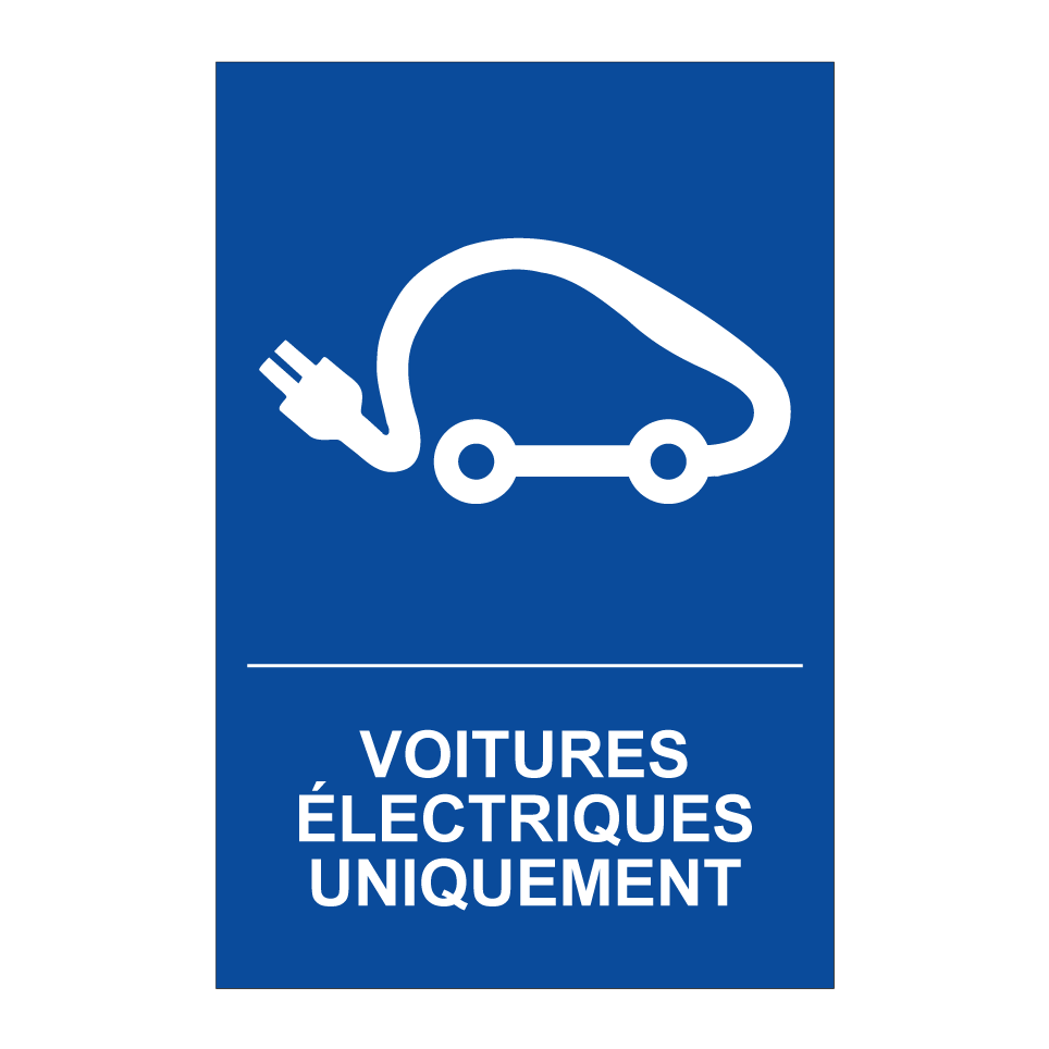 Panneau de stationnement avec le texte : "Voitures électriques uniquement" et une symbolique claire.
