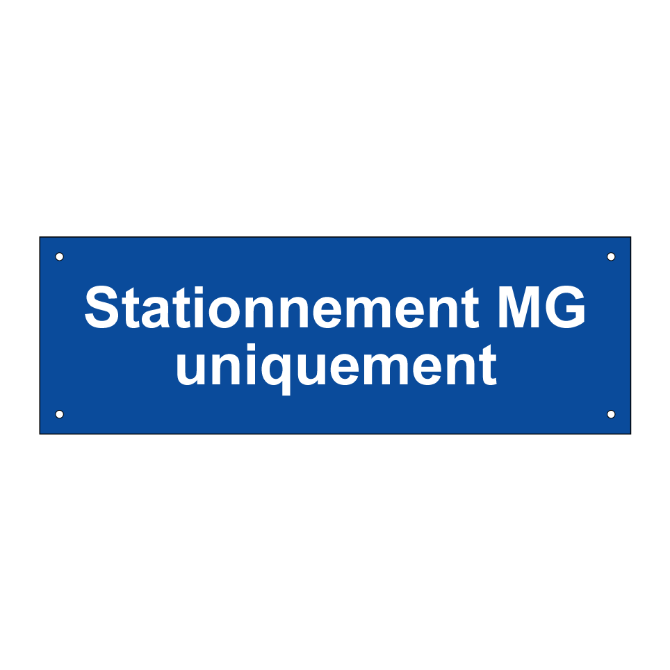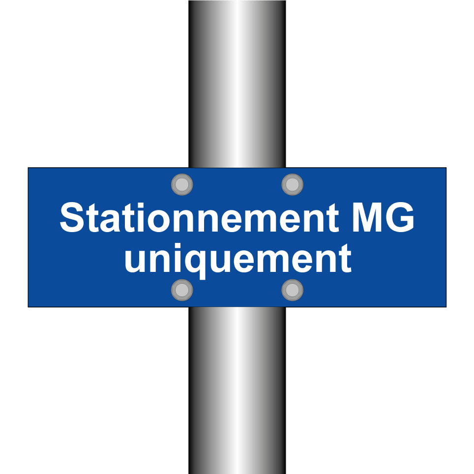 Panneau de stationnement avec le texte : "Stationnement MG uniquement".