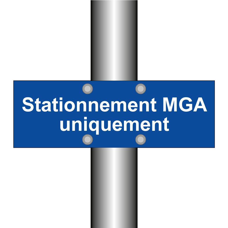 Panneau de stationnement avec le texte : "Stationnement MGA uniquement".