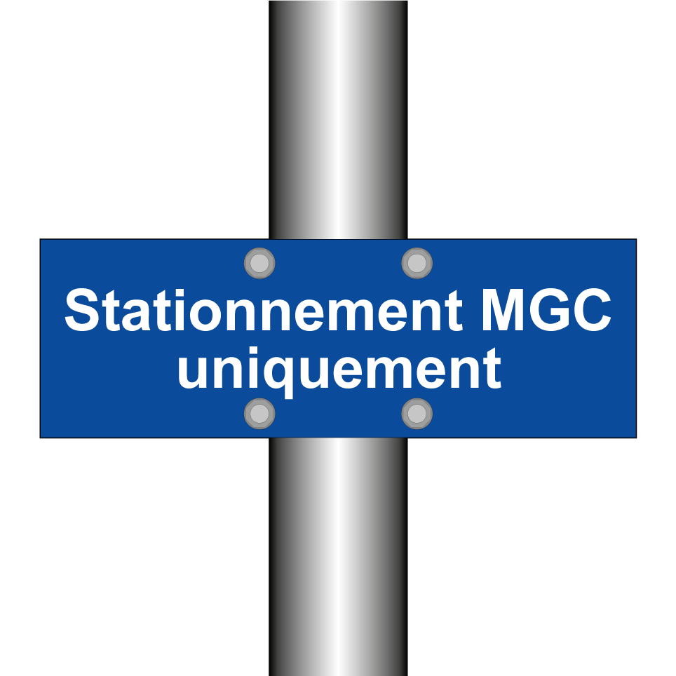 Panneau de stationnement avec le texte : "Stationnement MGC uniquement".
