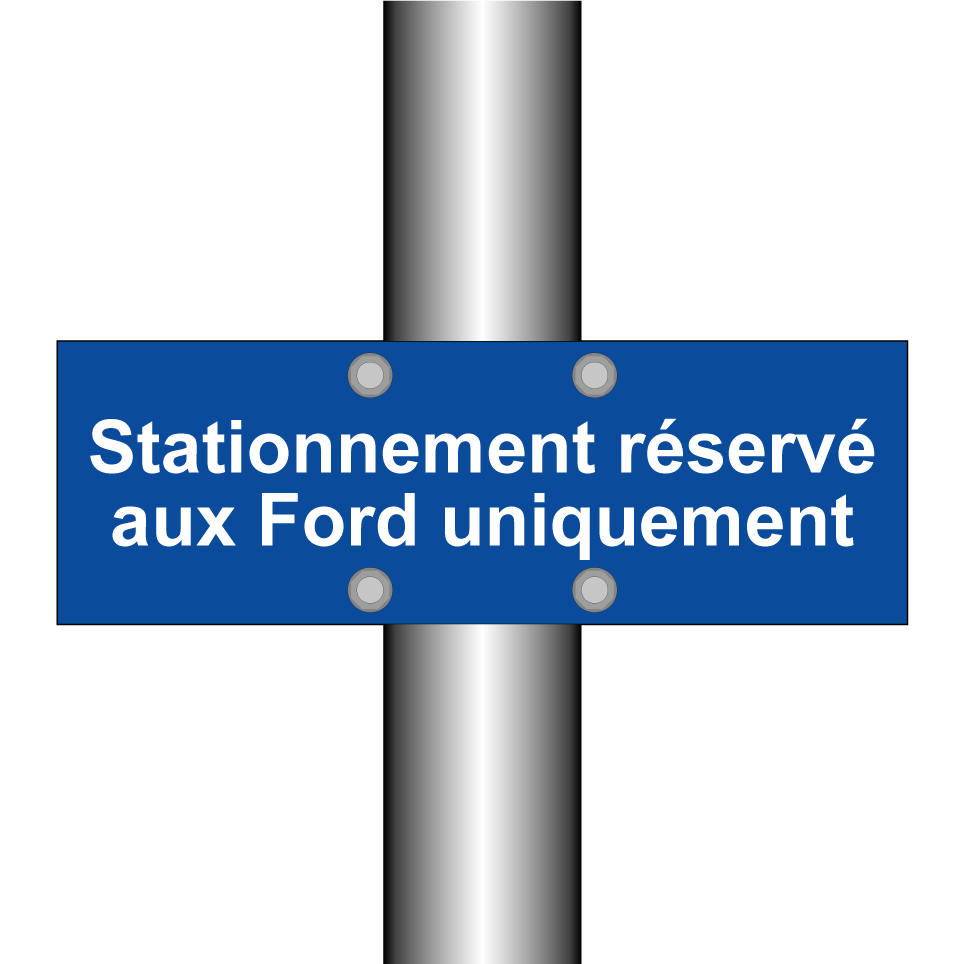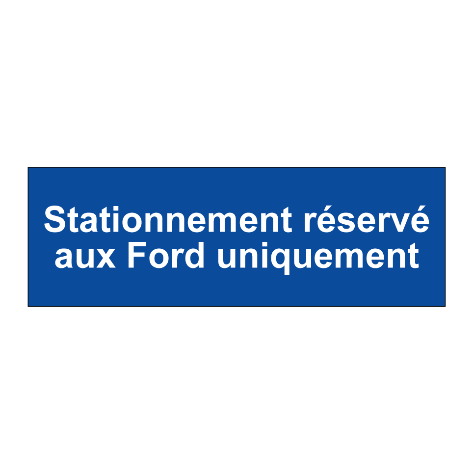 Panneau de stationnement avec le texte : "Stationnement réservé aux Ford uniquement".