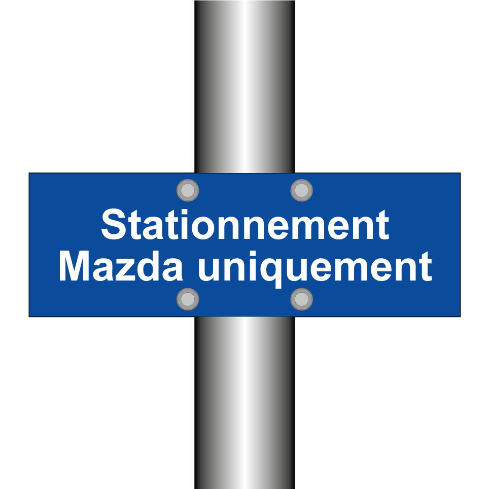 Panneau de stationnement avec le texte : "Stationnement Mazda uniquement".