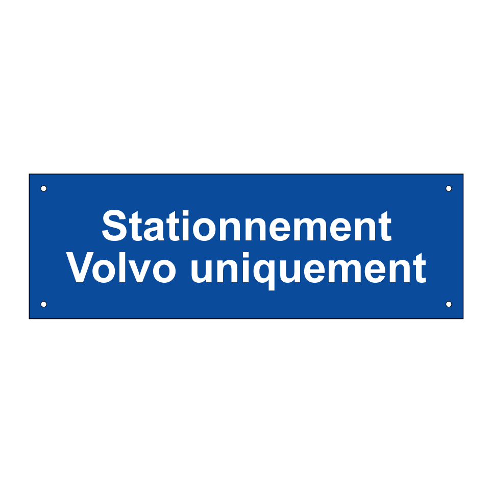 Panneau de stationnement avec le texte : "Stationnement Volvo uniquement".