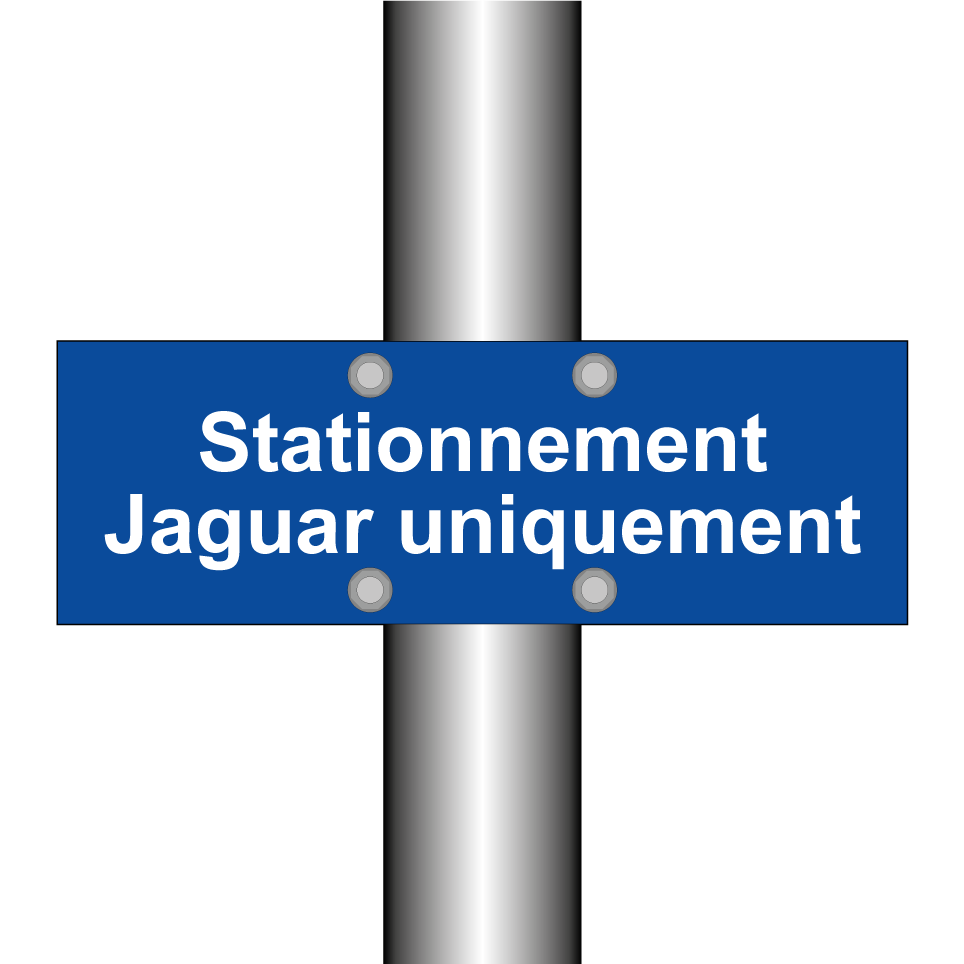 Panneau de stationnement avec le texte : "Stationnement Jaguar uniquement".